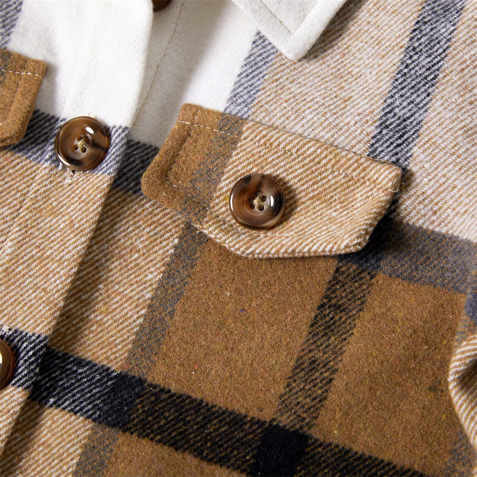 新作 PatPat カーキ チェック柄 ラペル ボタンダウン 長袖シャツ お父さんと私