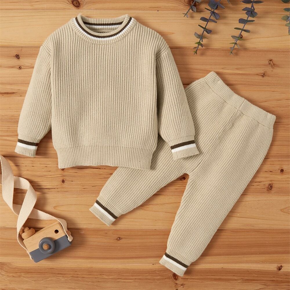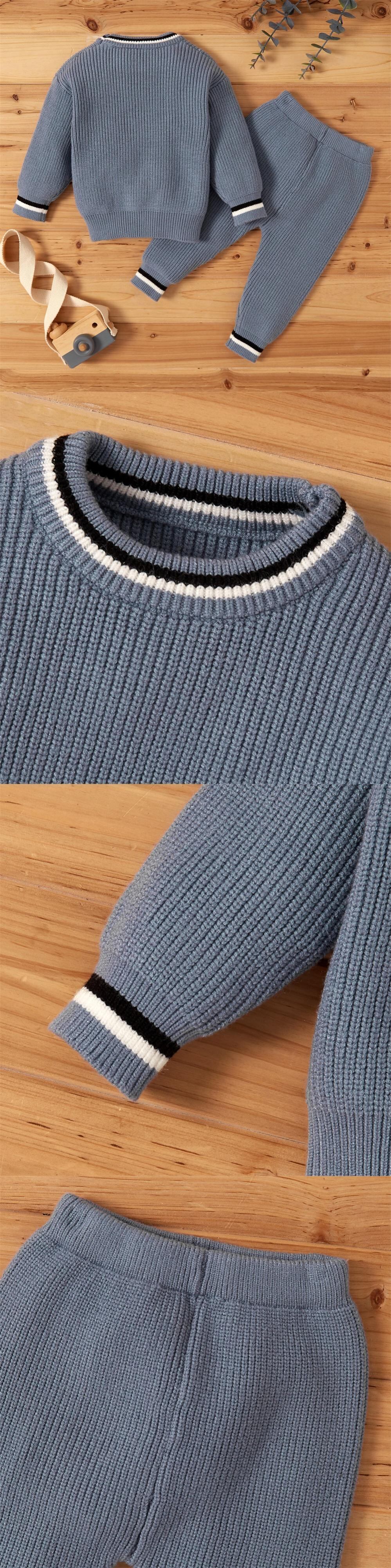 新作 PatPat 綿100% 2枚組 無地 ストライプ デコール ニット 長袖 ベビーセット