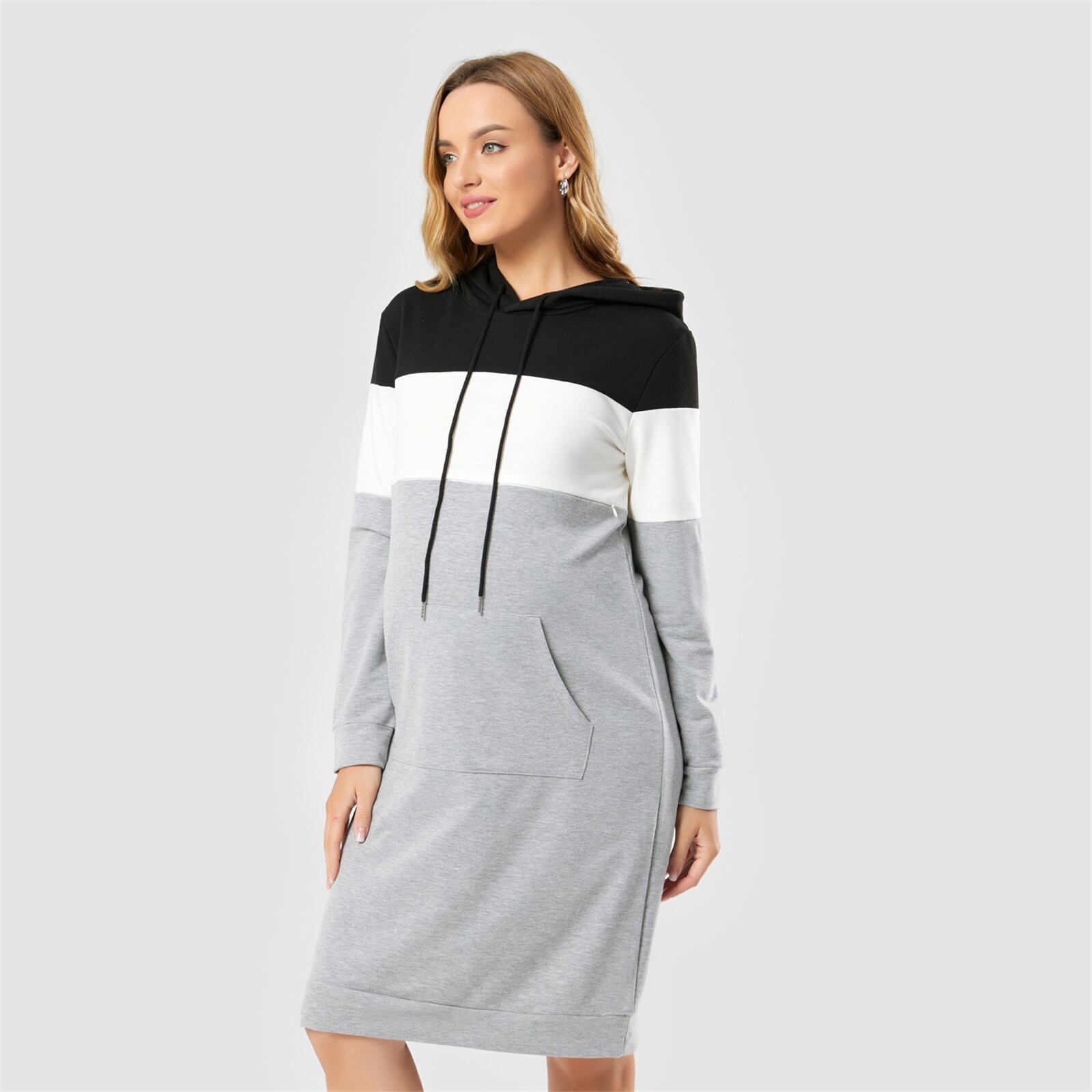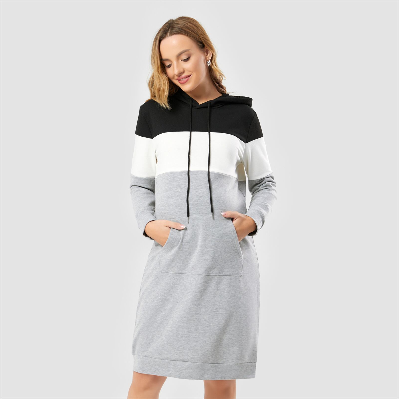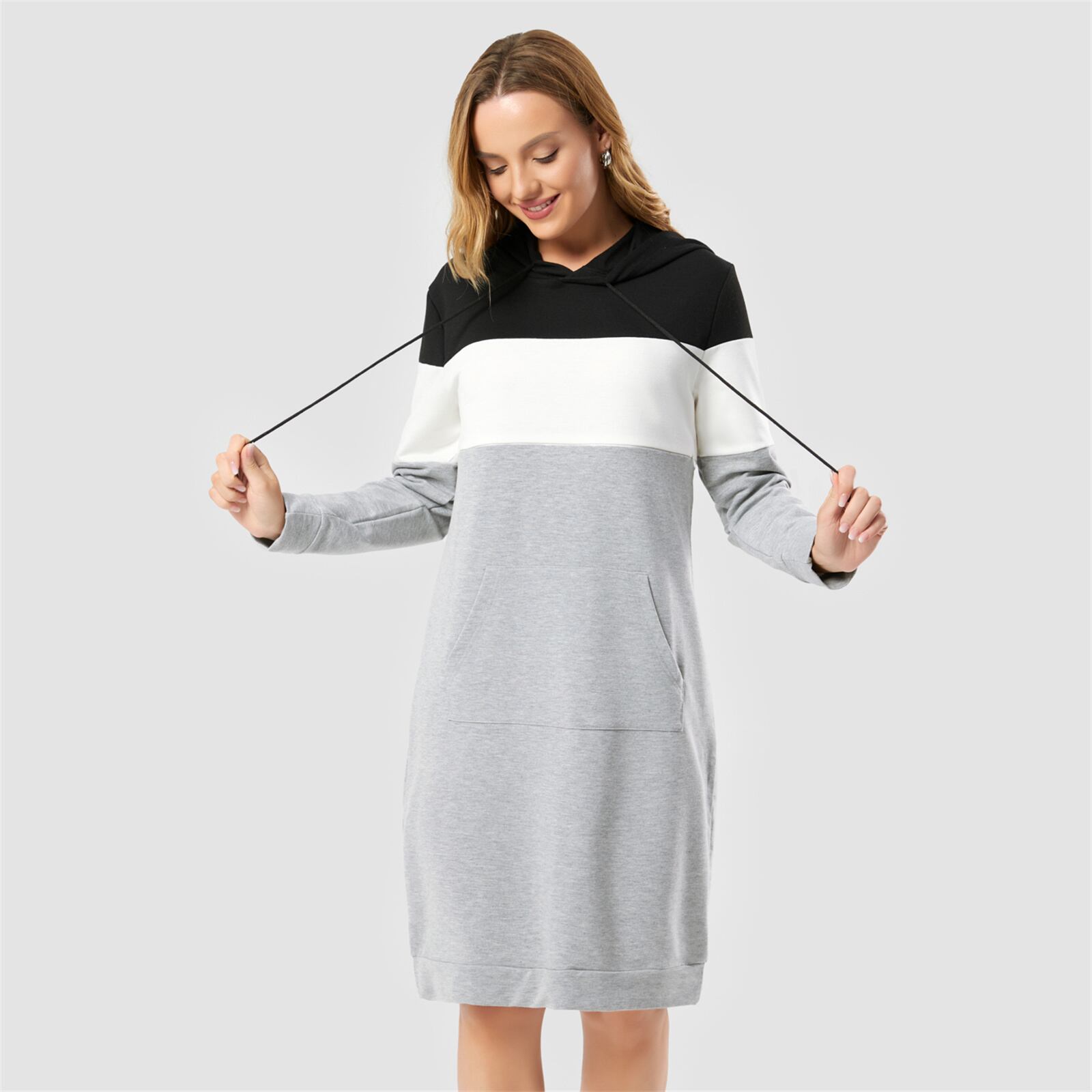 新作 PatPat Nursing カラーブロック カンガルー ポケット ドローストリング ロングライン パーカー