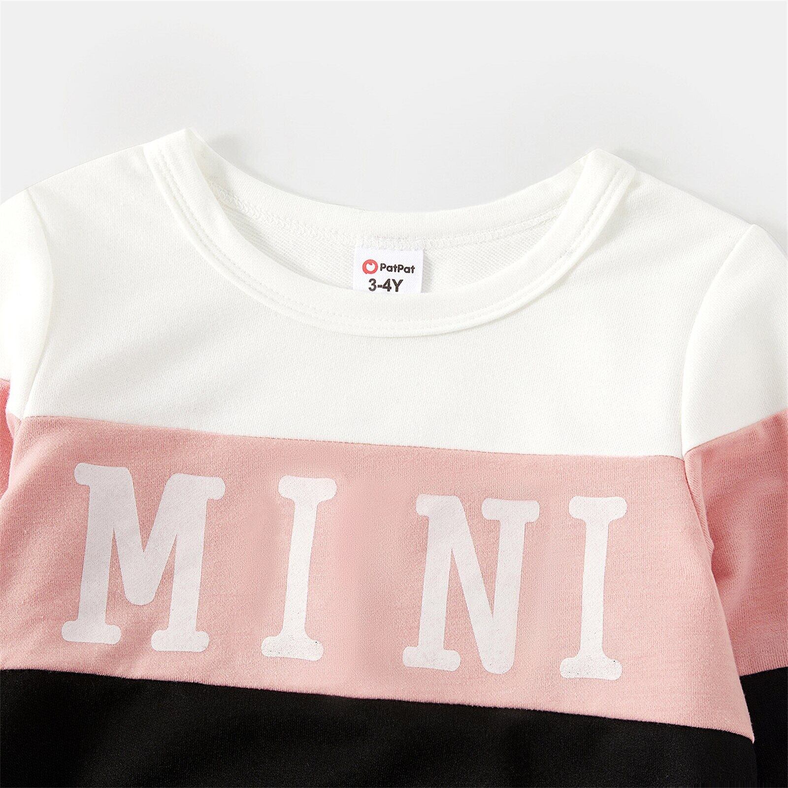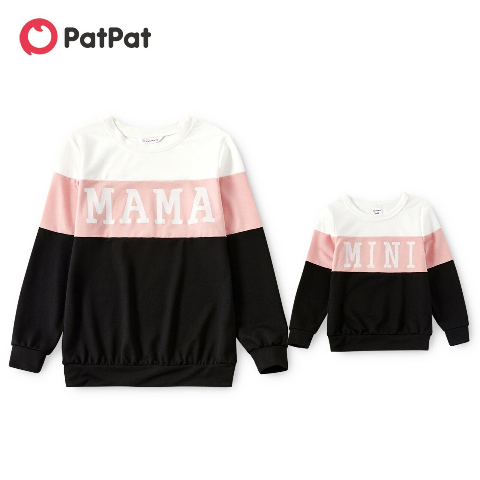新作 PatPat 無地 スプライス レター プリント 長袖 マッチング スウェットシャツ セット