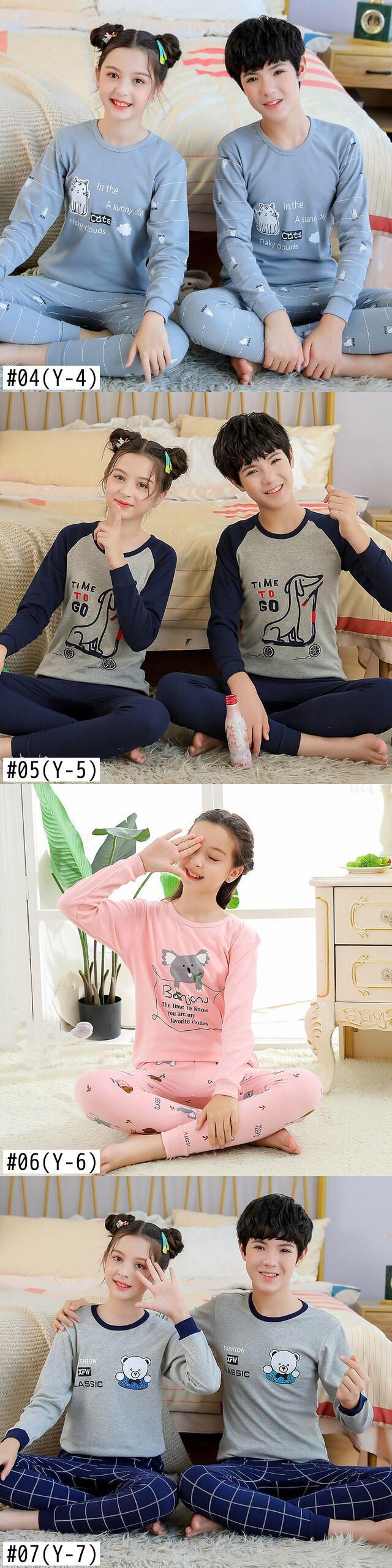新作 秋の子供パジャマ女の子漫画パジャマセット子供スパースター少年ナイトウェア綿十代の若者たち長袖パジャマスーツ 9-19Y