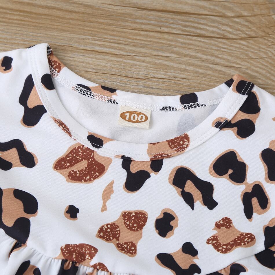 新作 幼児キッズベビーガールズヒョウドレス甘いクルーネック花びらフリルスリーブサンドレス服 12M-5Y