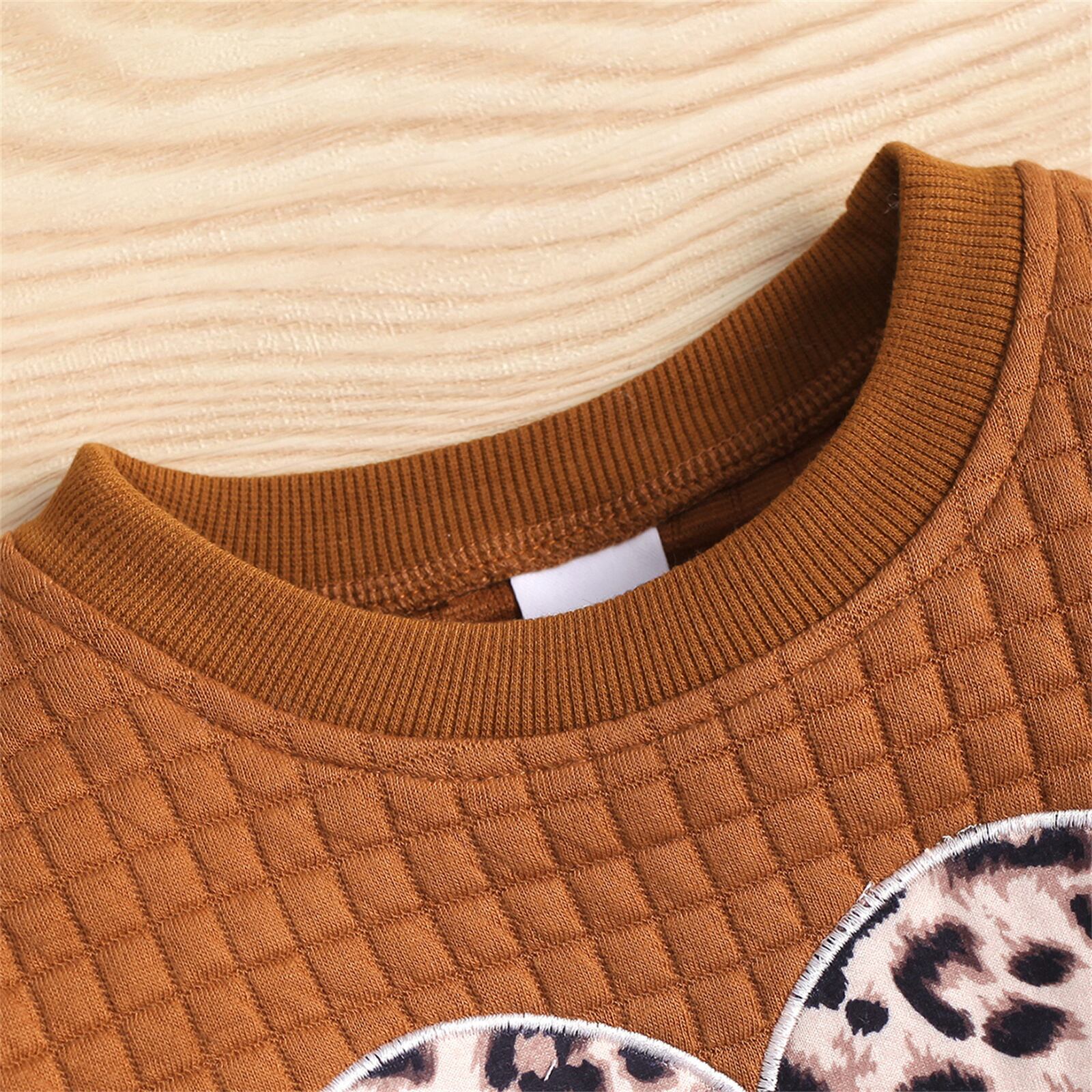 新作 PatPat 2ピース トドラーガール ハート ヒョウ柄 テクスチャードプルオーバーとフレアパンツセット