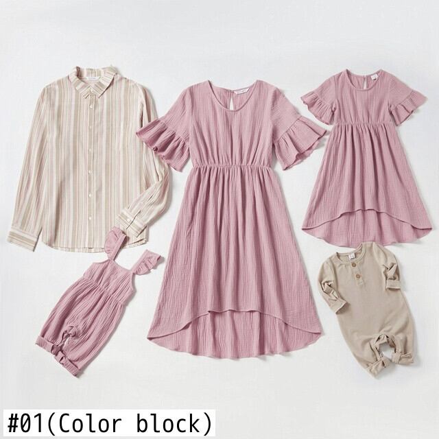 新作 PatPat Mosaic 綿100% 秋のファミリーお揃いセット(フラウンスワンピース・ピンストライプシャツ・ロンパース)