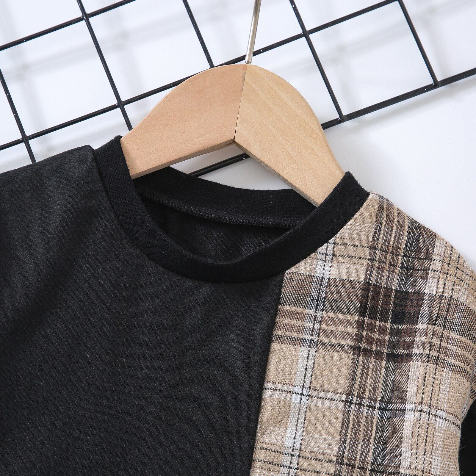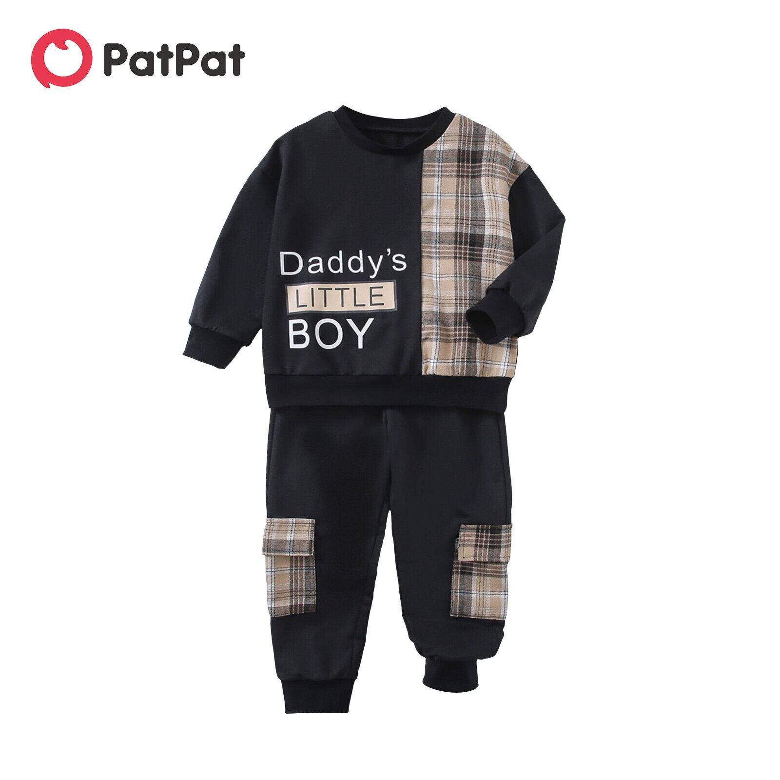 新作 PatPat 2ピース 幼児 男の子 レタープリント チェック柄スウェットシャツとポケットパンツセット
