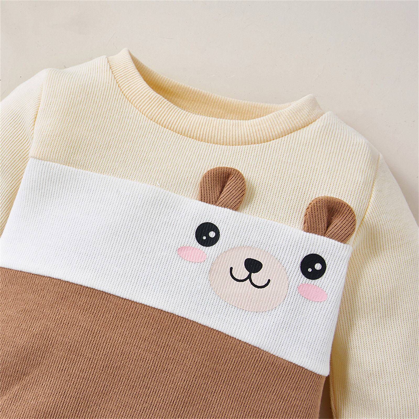 新作 PatPat 2ピース ベビーボーイ 漫画 アニマルプリント カラーブロック 長袖 スポーツウェア 上下セット