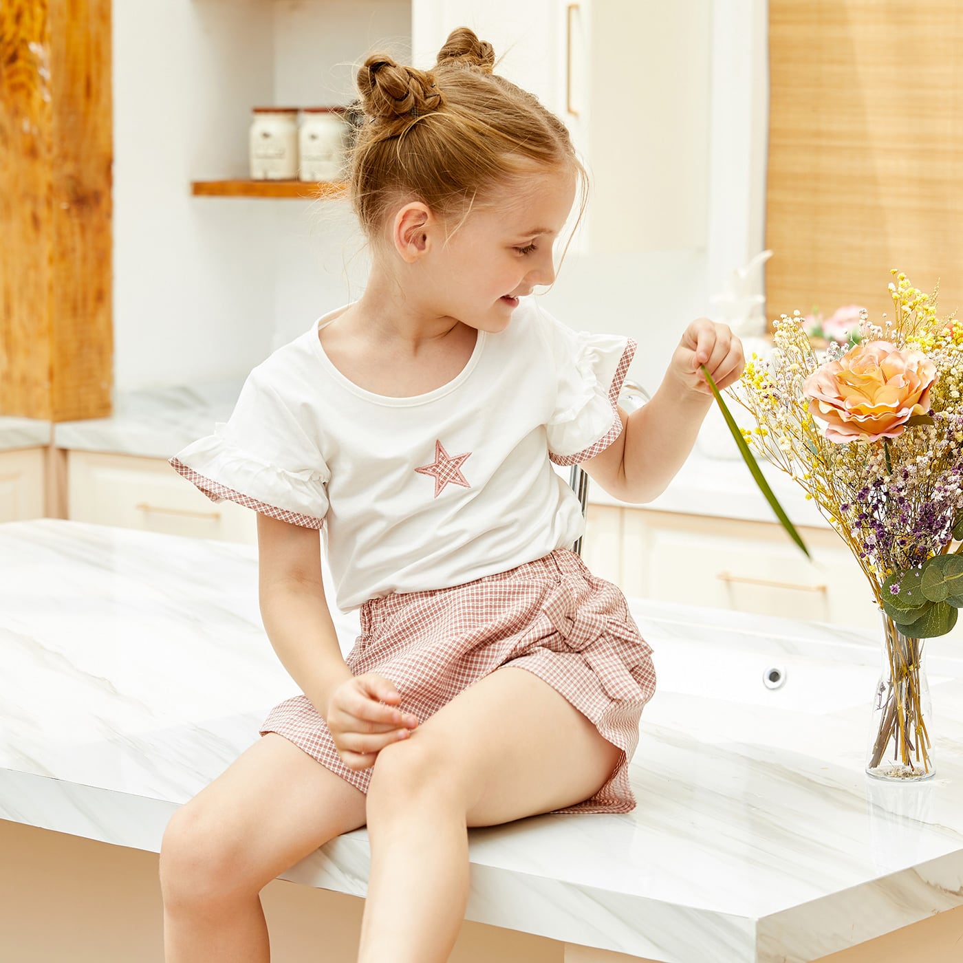 新作 PatPat 夏 2 ピース ベビー 幼児 プリティ チェック柄 スター トップスとスカート ショーツ セット 丸襟