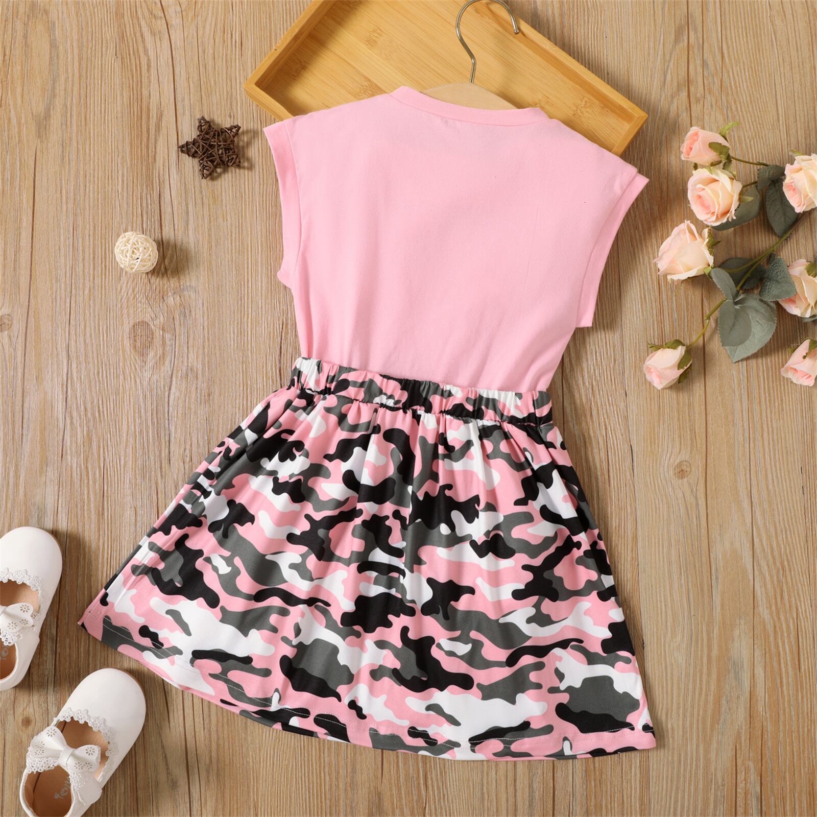 新作 PatPat 幼児 女の子 レター カモフラージュ プリント ノースリーブ スプライス ドレス