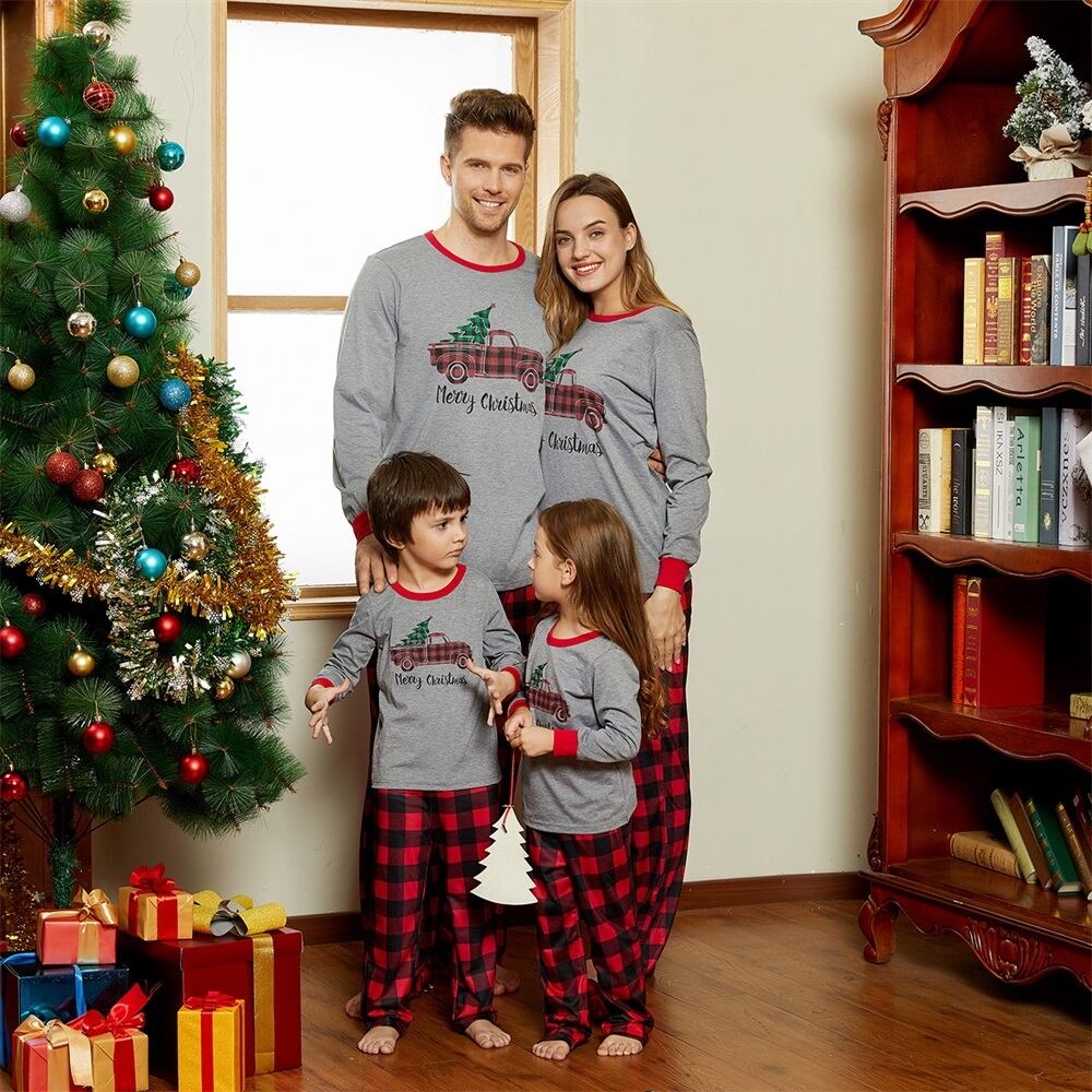 新作 PatPat ファミリー ルック パーティー パジャマ セット ポジショニング プリント マッチング パジャマ トラック ツリー クリスマス ファミリー マッチング パジャマ セット