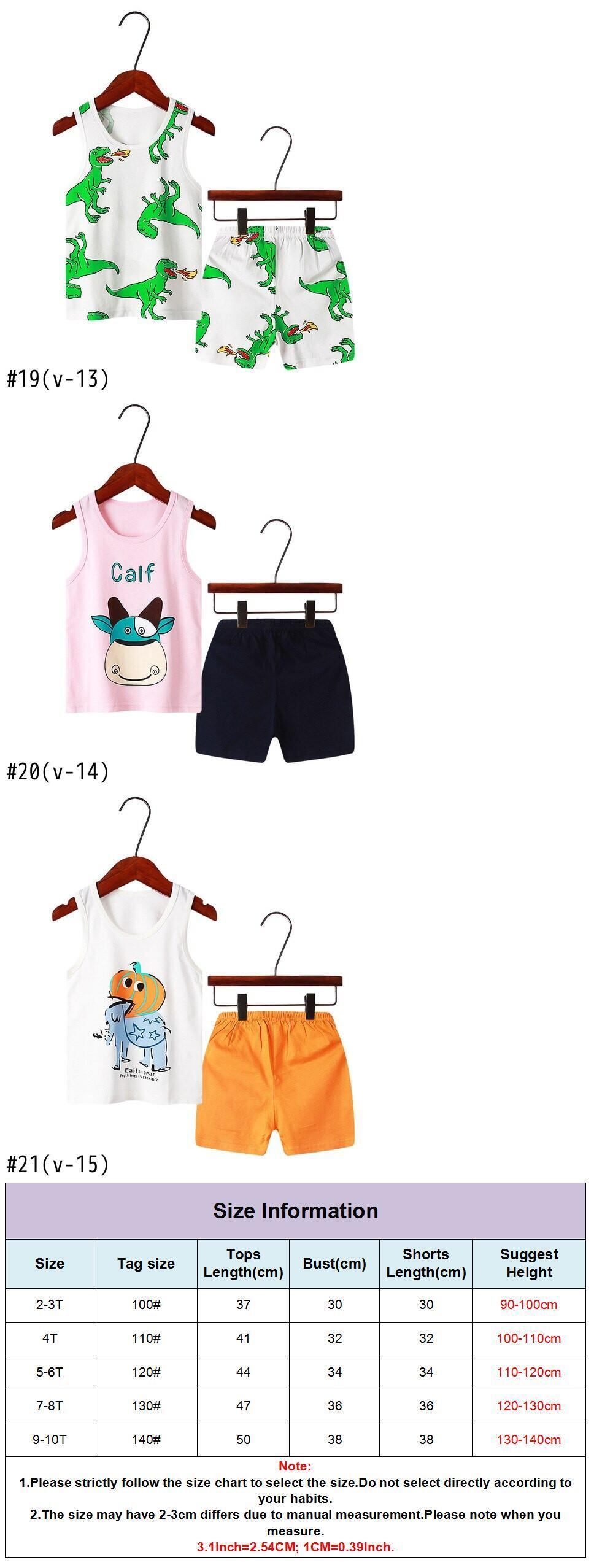 新作 子供の女の子トラックスーツ幼児キッズサマーベストタンククロップトップショーツ漫画恐竜スポーツ男の赤ちゃん服セット