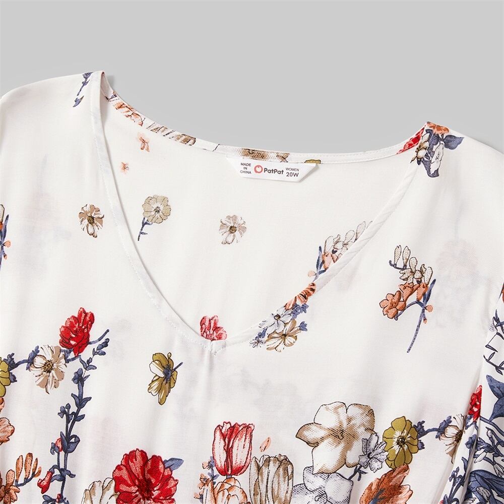 新作 PatPat フローラル プリント V ネック フリル スリーブ マッチング ヴィンテージ ドレス