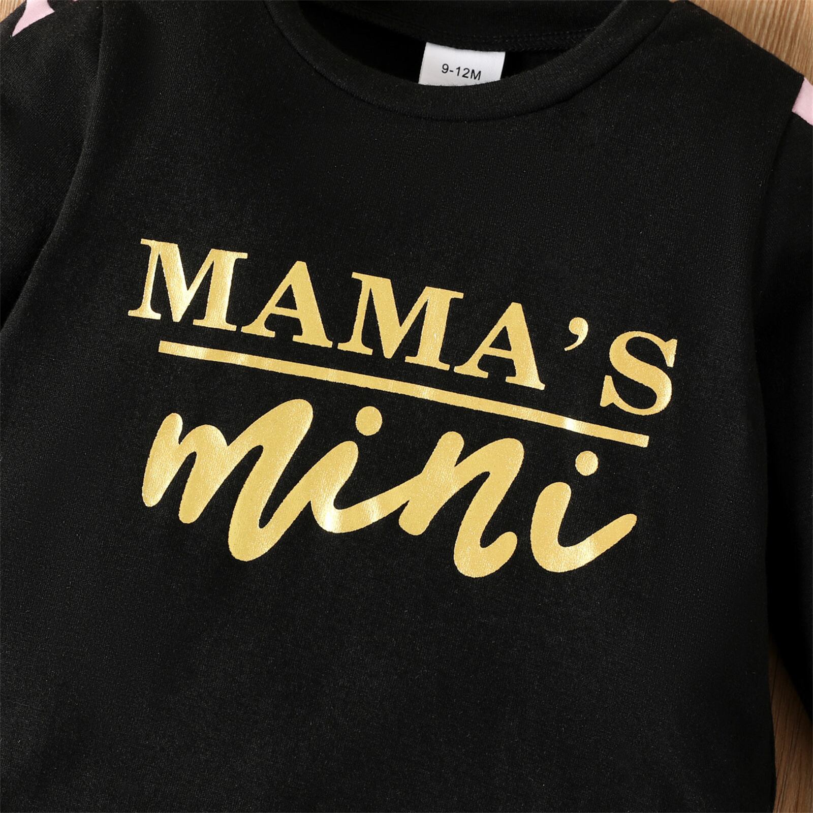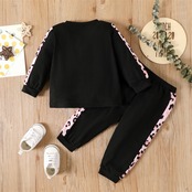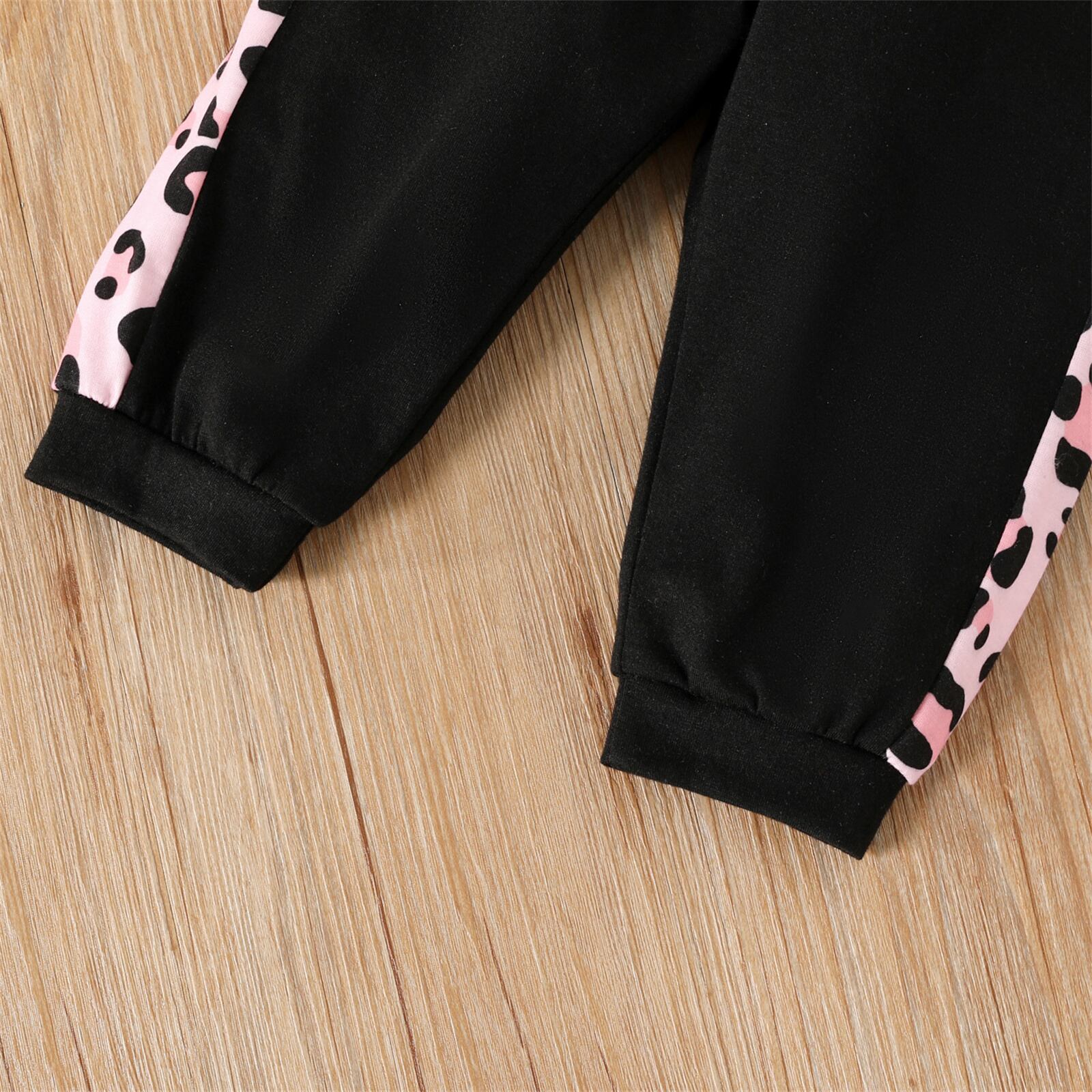 新作 PatPat 2ピース ベビーガール レタープリント ヒョウ スプライシング ブラック 長袖 スウェットシャツとズボンセット