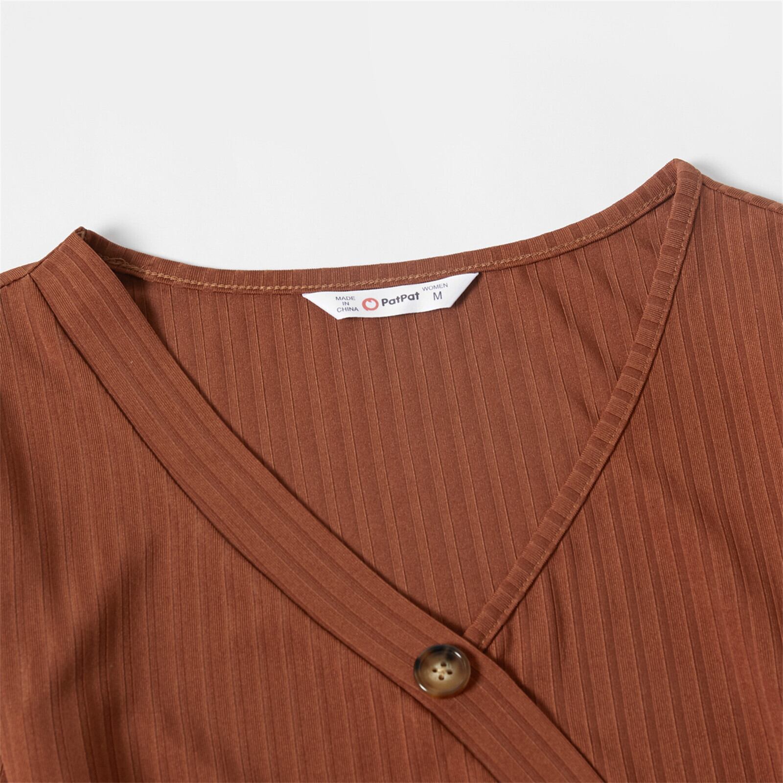 新作 PatPat リブ V ネック 長袖 ブラウン ベルト付き ボディコン ドレス ママと私
