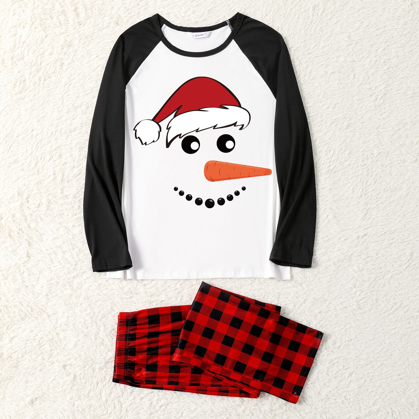 新作 PatPat クリスマス 雪だるま プリント 家族おそろい 長袖 バッファローチェック柄 パジャマセット (難燃性)