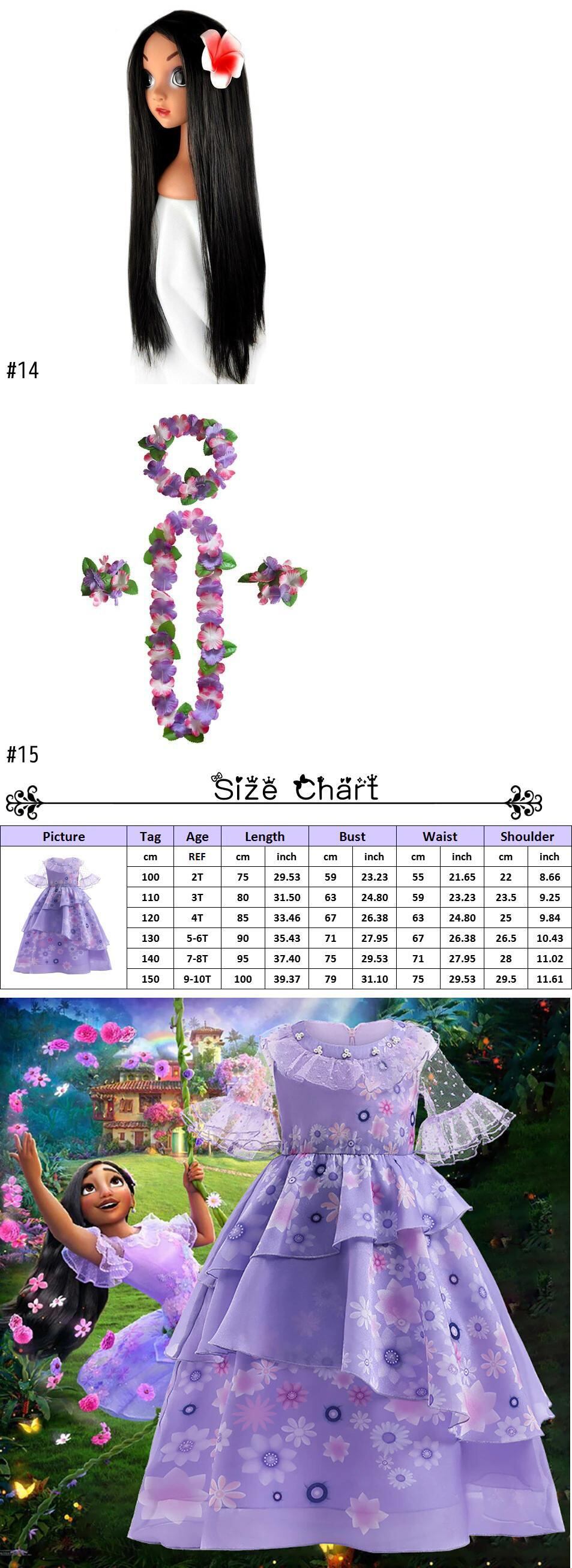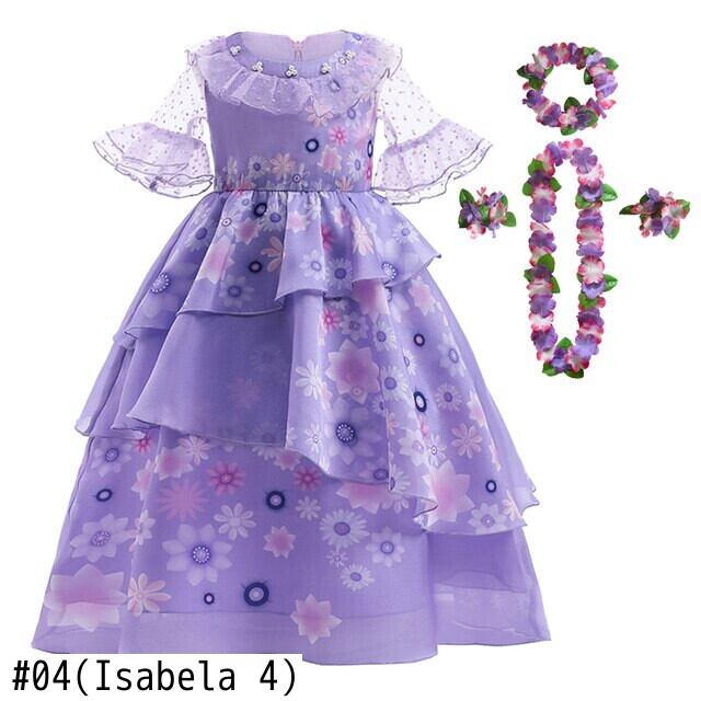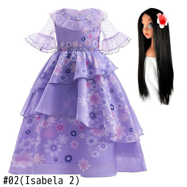 新作 2022 Encanto 女の子 Isabela ドレス幼児女の子紫色の花フリルドレスパーティーロールプレイ