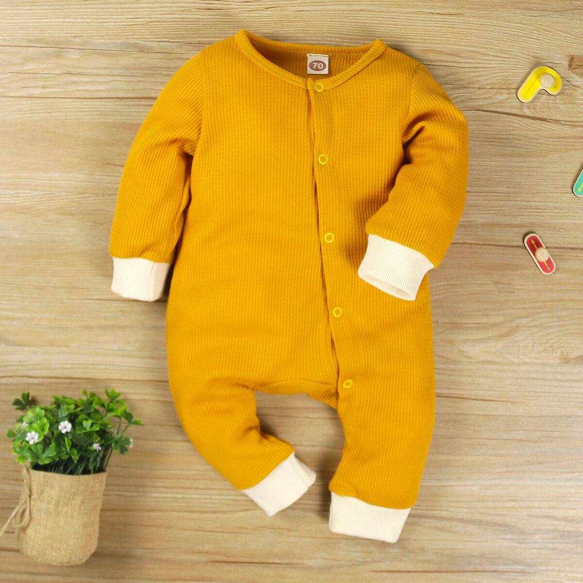 新作 PatPat ソリッド スプライス ワッフル ロングスリーブ ベビー ジャンプスーツ