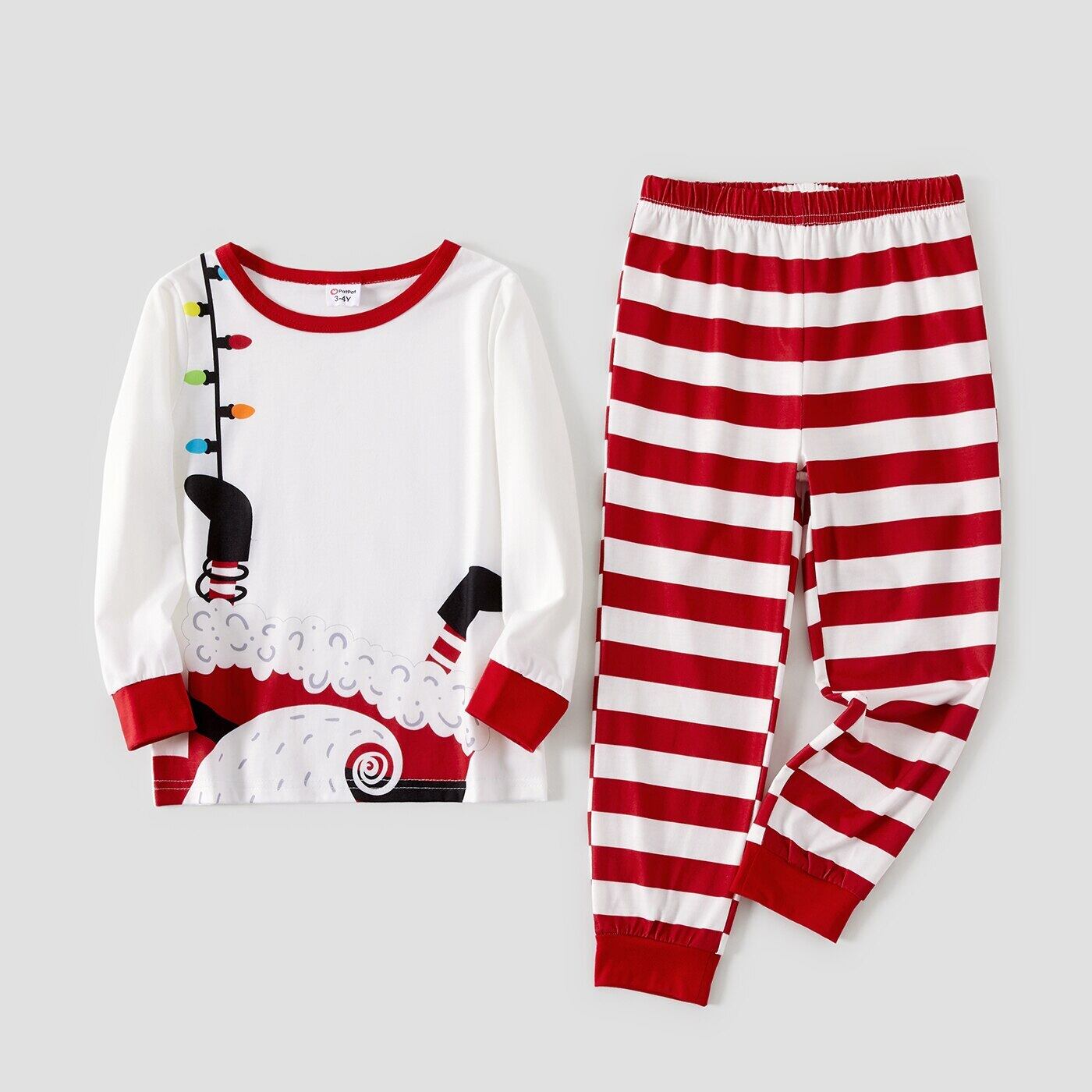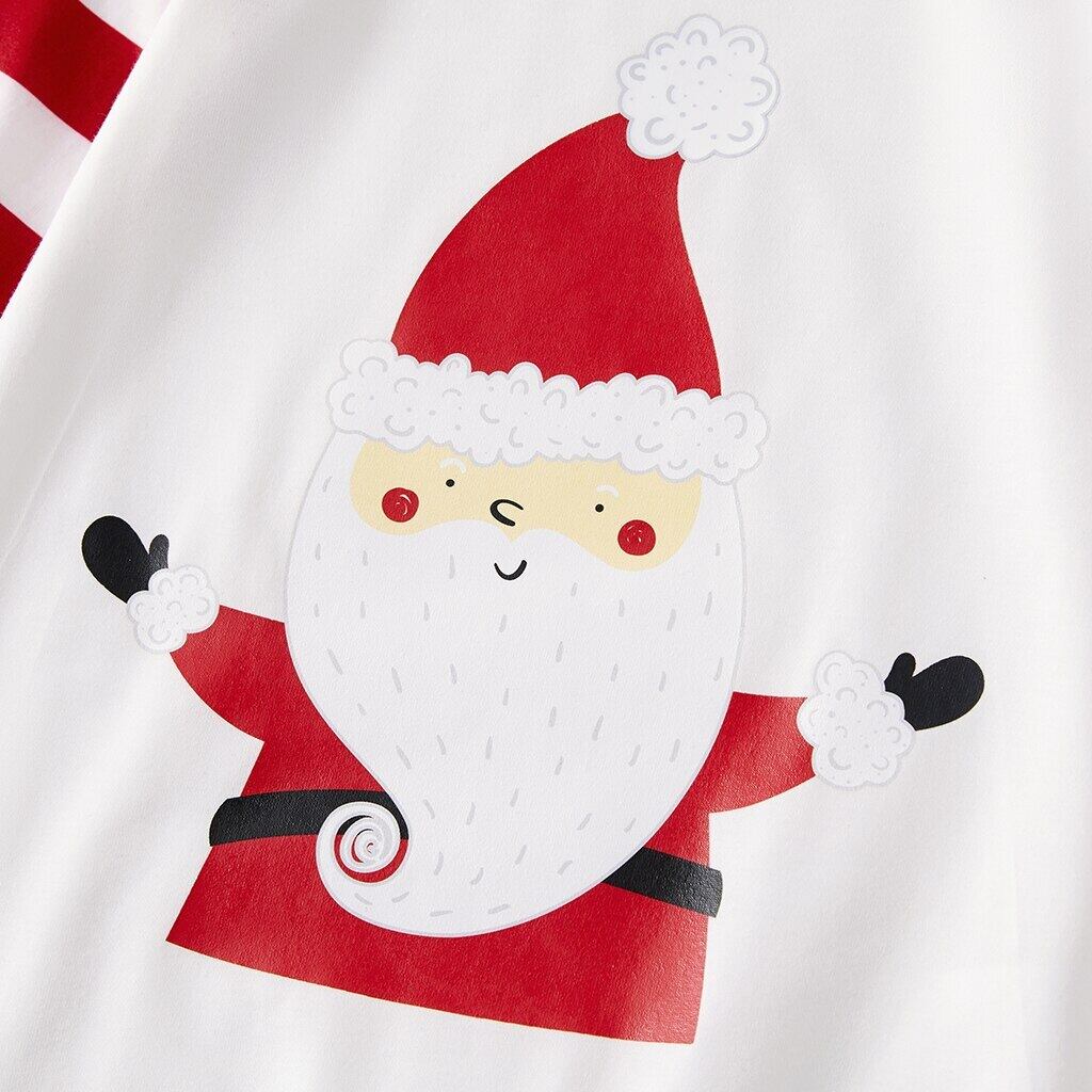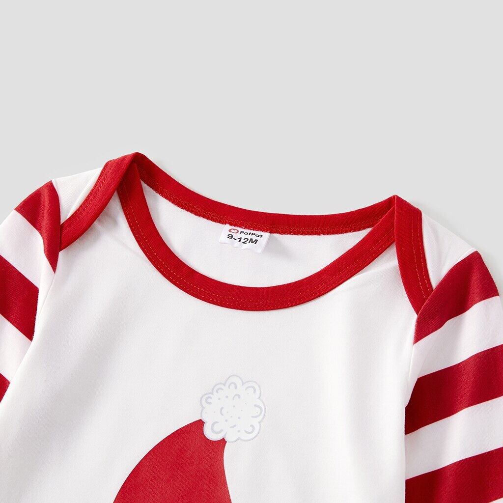 新作 PatPat クリスマス 白と赤のストライププリント ファミリーマッチングパジャマセット (難燃性)