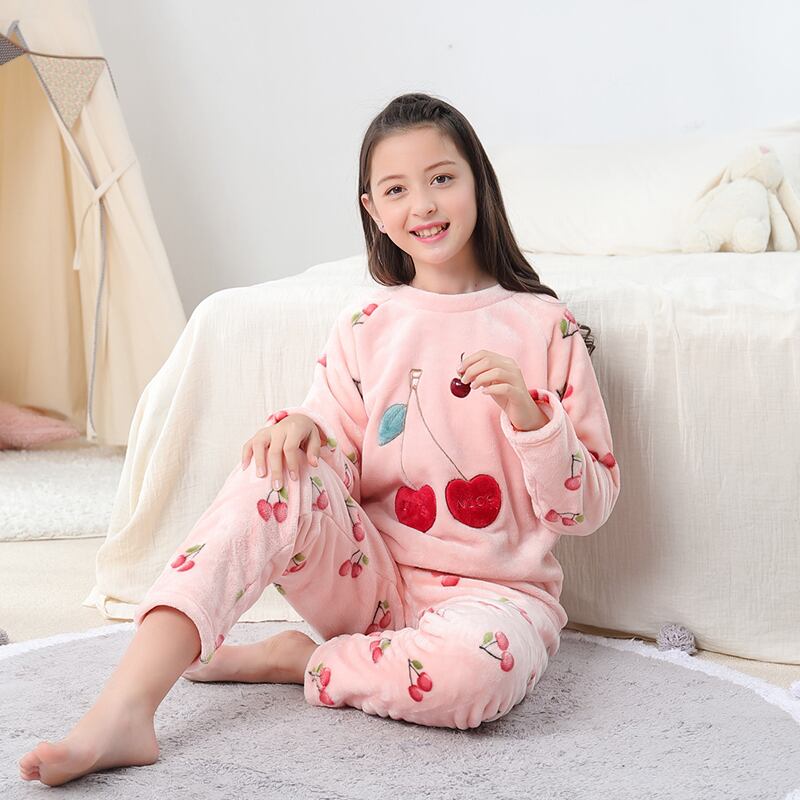 新作 冬の女の子フランネ服セット長袖パジャマ子供十代の子供パジャマパジャマビッグガールズナイトスーツ Pijamas 5-17T