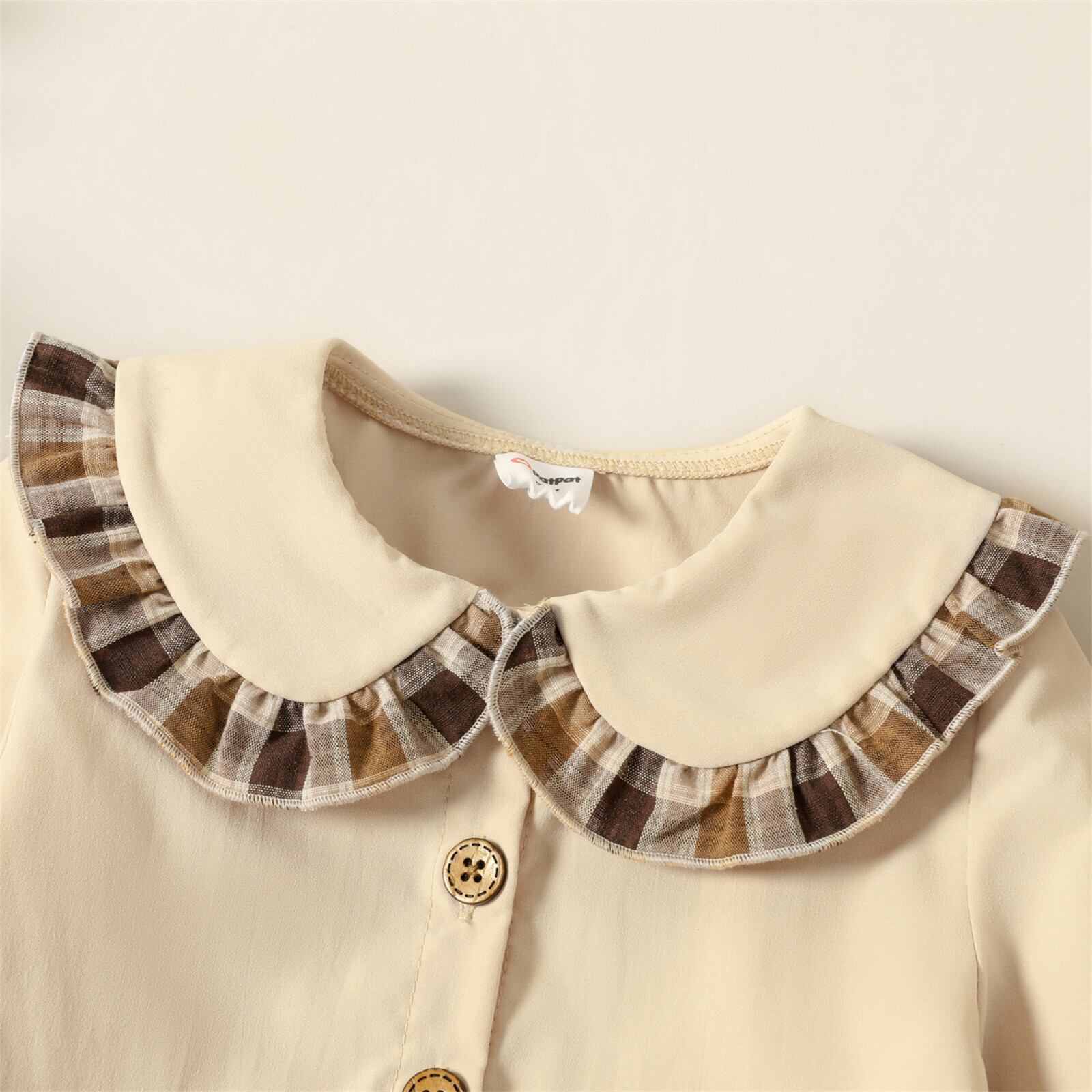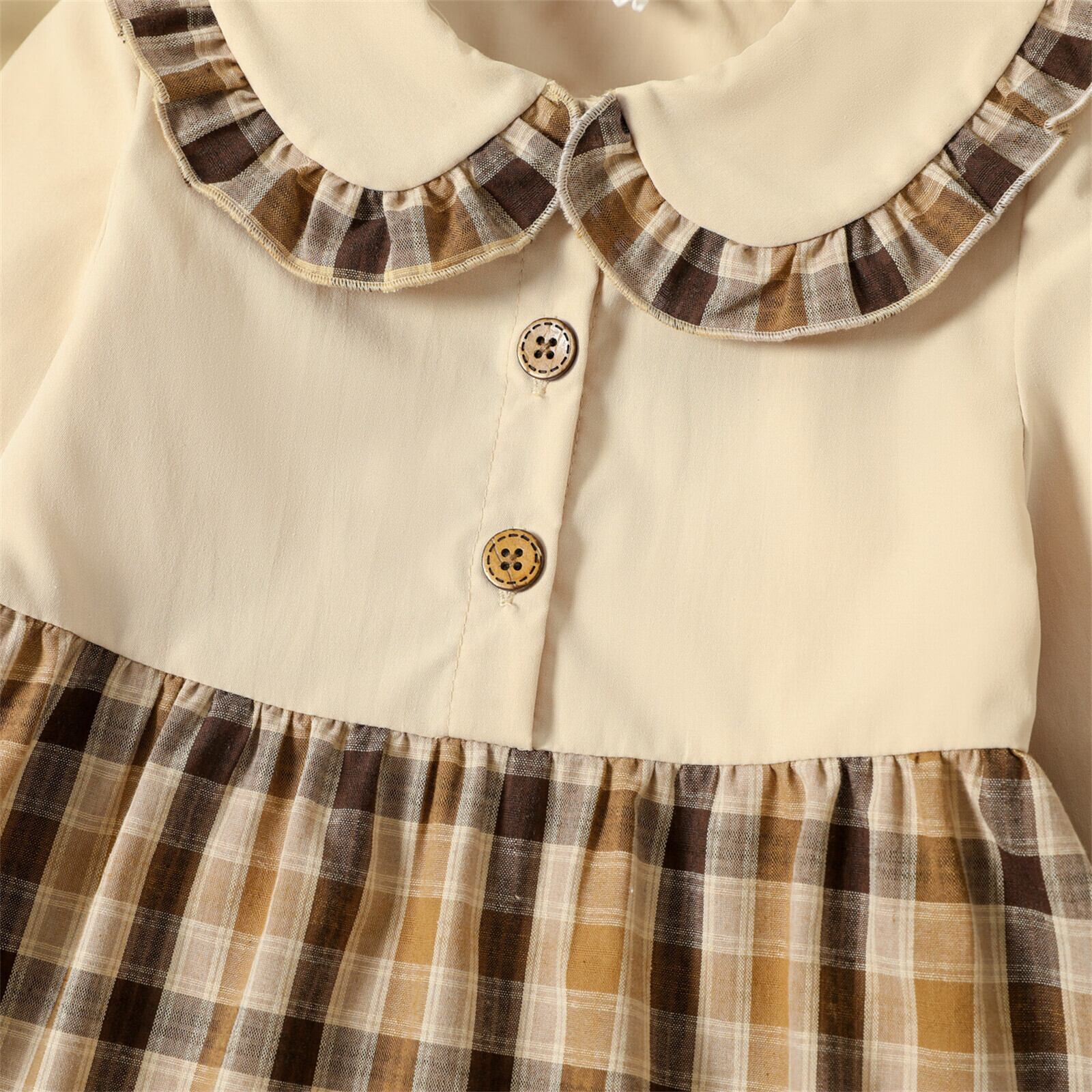新作 PatPat 幼児の女の子の人形の襟の格子縞の継ぎボタンの長袖のドレス