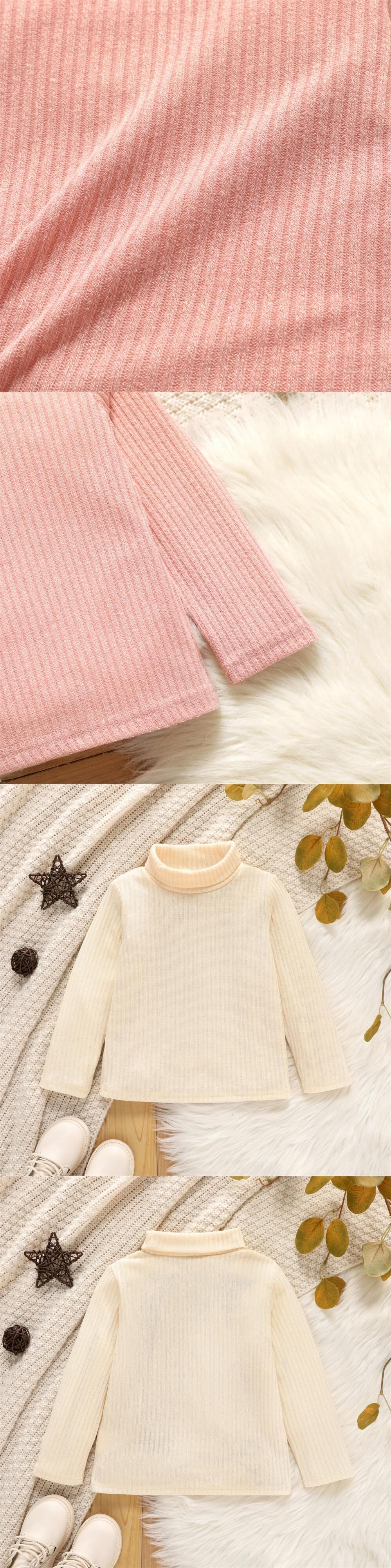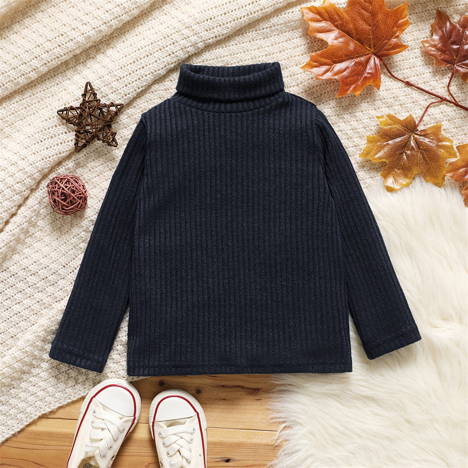 新作 PatPat 幼児の女の子タートルネック リブ無地長袖セーター