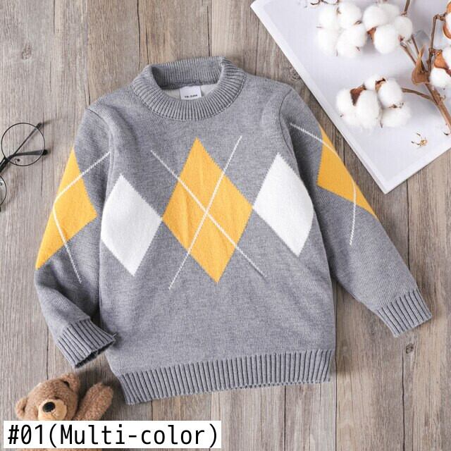 新作 PatPat トドラー 男の子 プレッピー スタイル チェック柄 カラーブロック ニット セーター