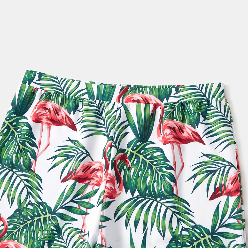 新作 PatPat 2021 夏 ファミリールック フラウンススリーブ フラミンゴとリーフプリント ワンピース お揃い水着
