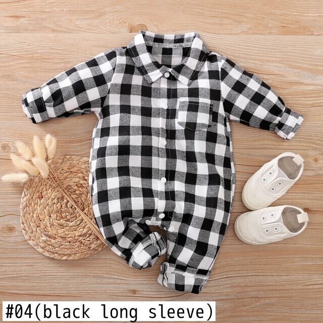 新作 PatPat 秋冬ベビージャンプスーツロンパース綿クリック格子縞襟ワンピース 0-12M 男の子服