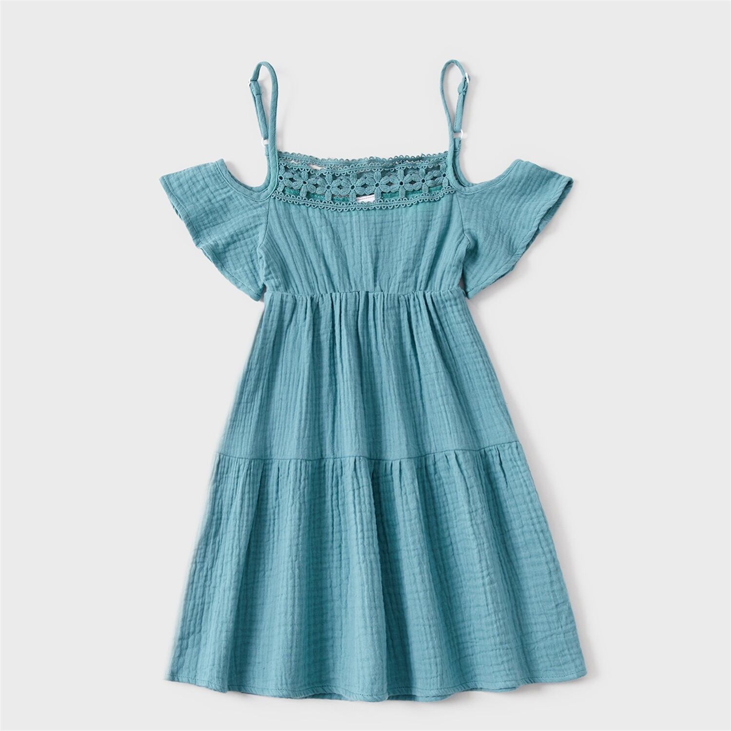 新作 PatPat 綿 100% 無地とチェック柄のファミリー マッチング ブルー セット