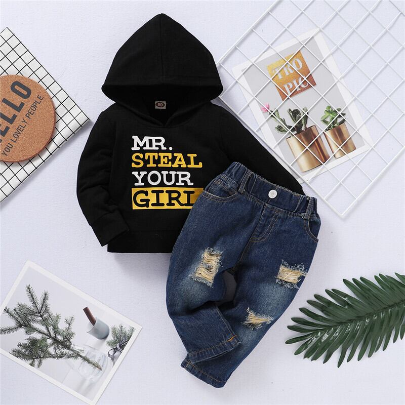 新作 PatPat 2020 春と秋の男の子の手紙セット 0-2 歳の黒の男の子の服のパーカーとパンツ