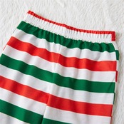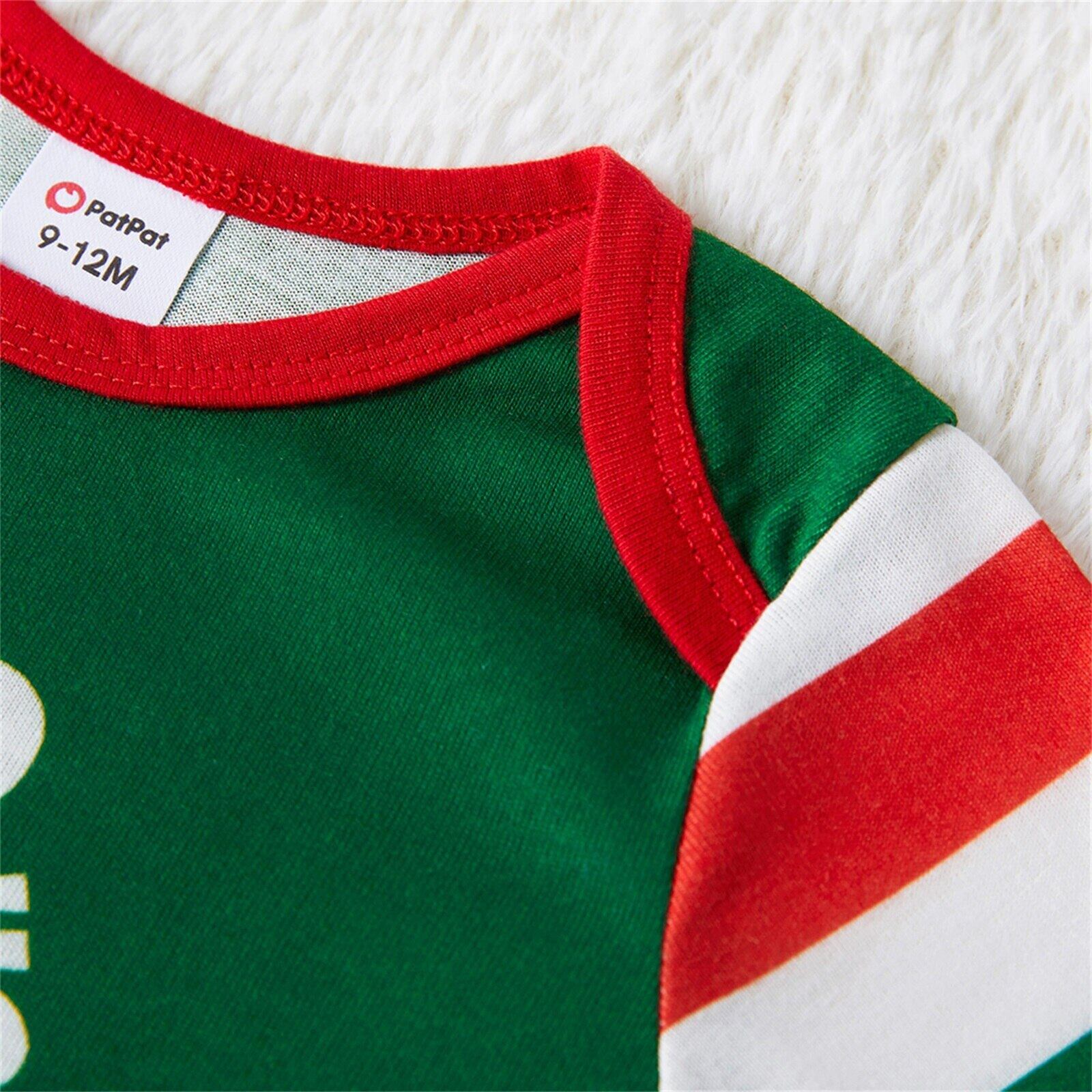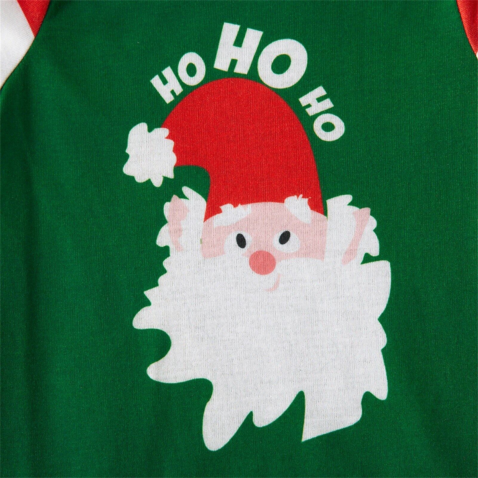 新作 PatPat クリスマス カートゥーン サンタ プリント カラーブロック ファミリー マッチング ラグラン 長袖 ストライプ パジャマセット (難燃性)