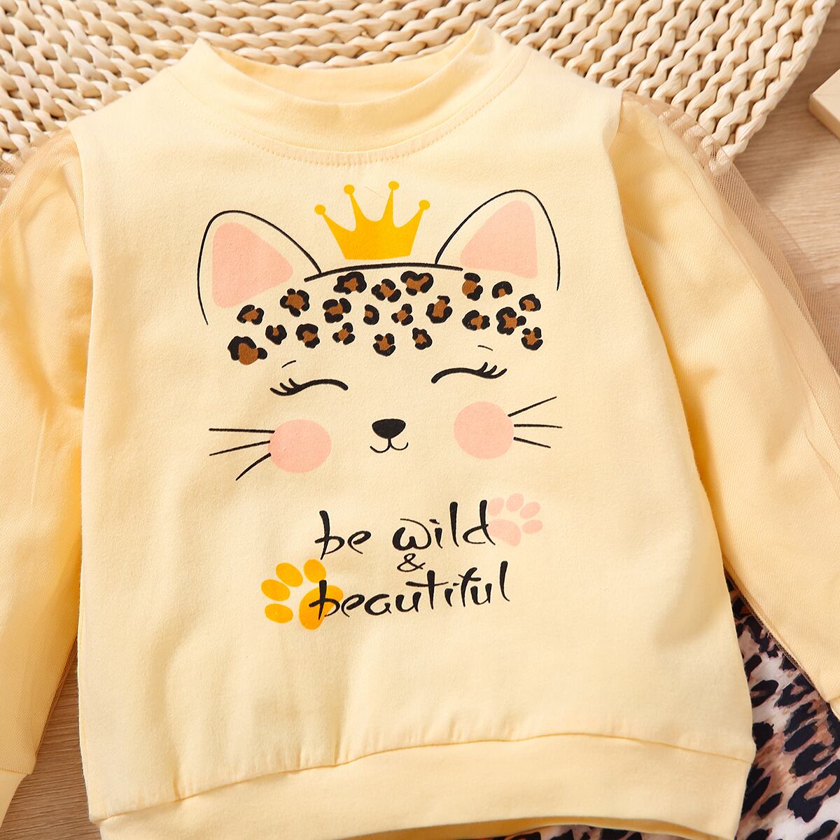 新作 PatPat 2ピース 幼児 女の子 レターキャット プリント プルオーバー スウェットシャツ ヒョウ柄 パンツ セット