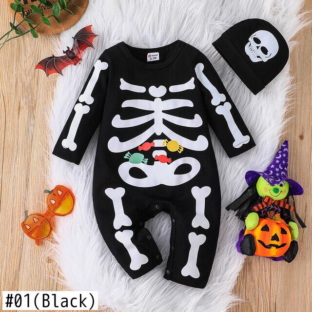 新作 PatPat s 2 PCS ベビーボーイ 綿95% 長袖 スケルトンプリント ジャンプスーツ 帽子付き ベビー服セット