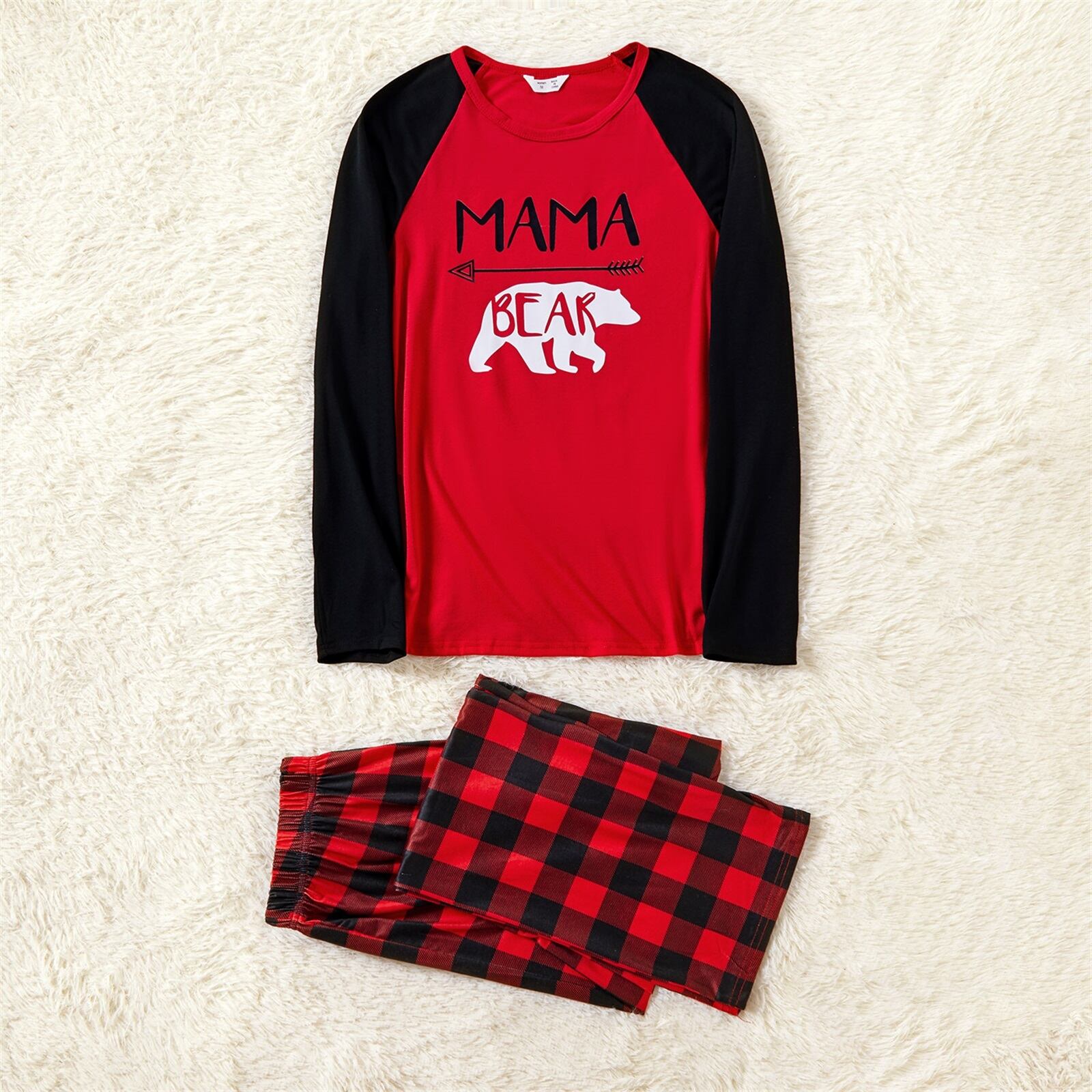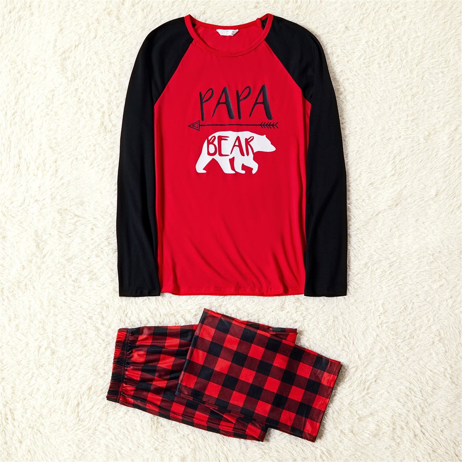 新作 PatPat クリスマス シロクマとレタープリント レッド 家族おそろいラグラン長袖チェック柄パジャマセット (防炎)