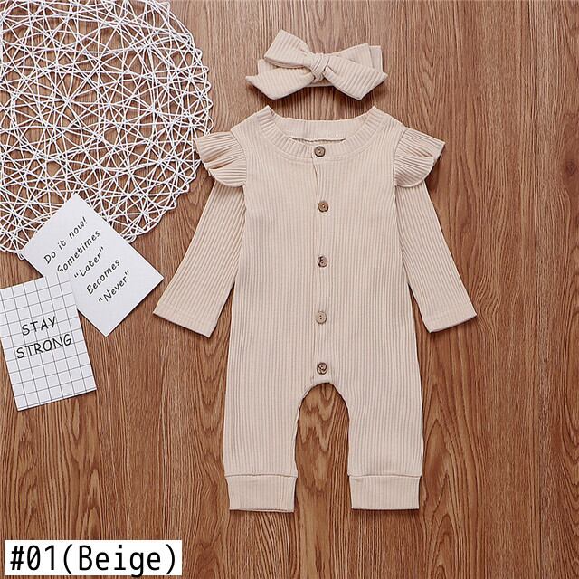 新作 PatPat 2021年春秋 ベビー 無地 フラウンス ジャンプスーツ カチューシャセット付き 女の赤ちゃん Baby's