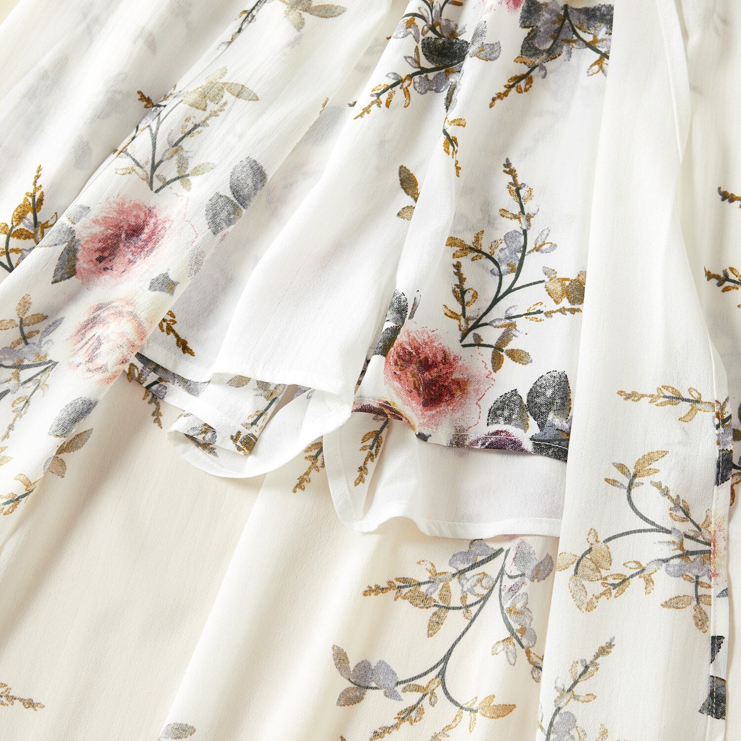 新作 PatPat 夏花柄ホワイト マッチング マキシ ロンパース ドレス ママと私