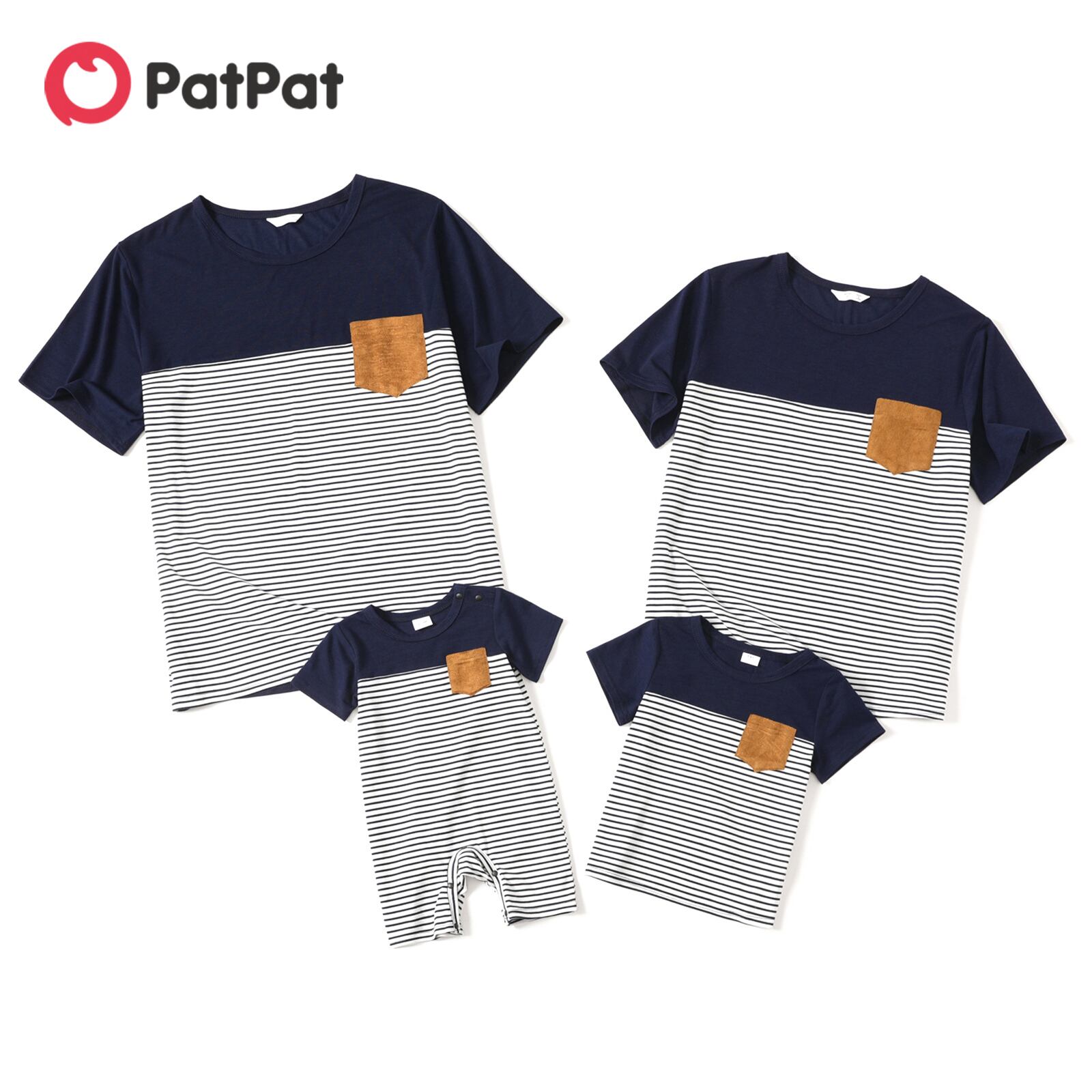新作 PatPatファミリーマッチングソリッドスプライシングストライプ半袖Tシャツ