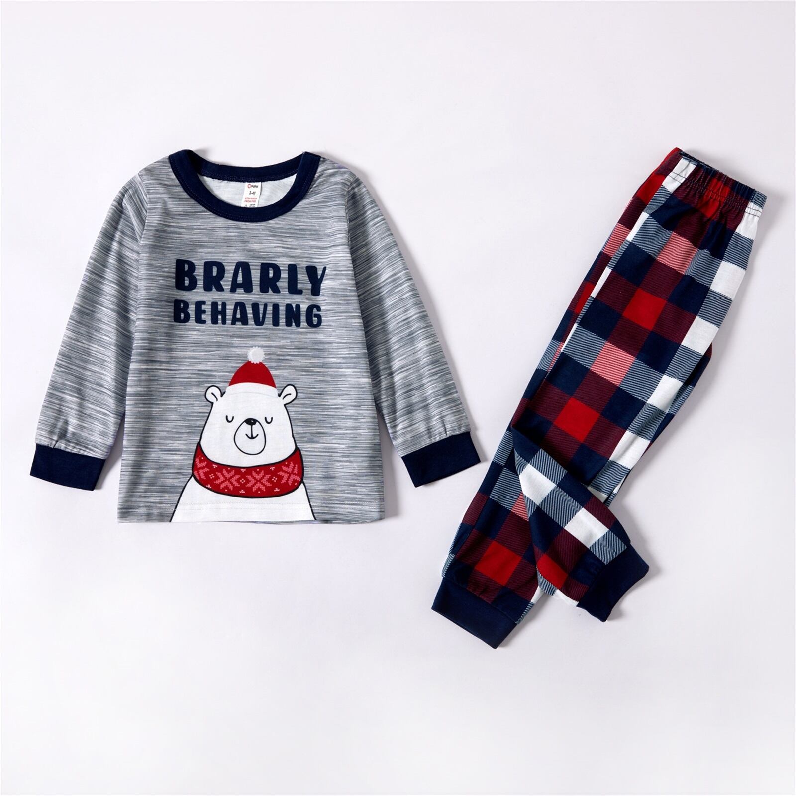 新作 PatPat クリスマス シロクマとレタープリント グレー 家族おそろい長袖チェック柄パジャマセット (防炎)