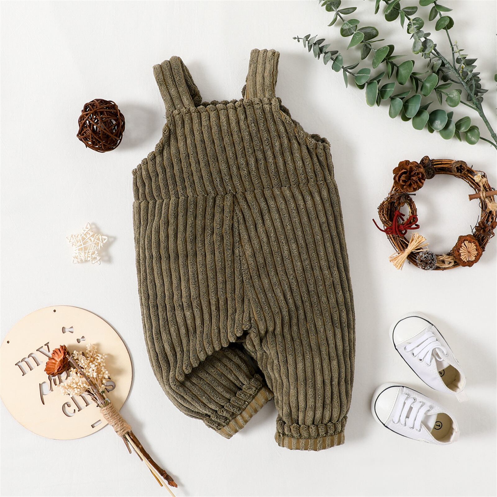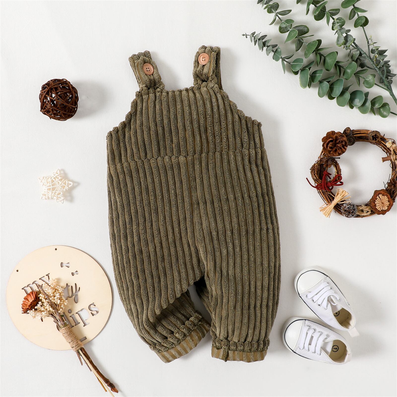 新作 PatPat ベビー 男の子/女の子 ソリッド リブ フリース オーバーオール