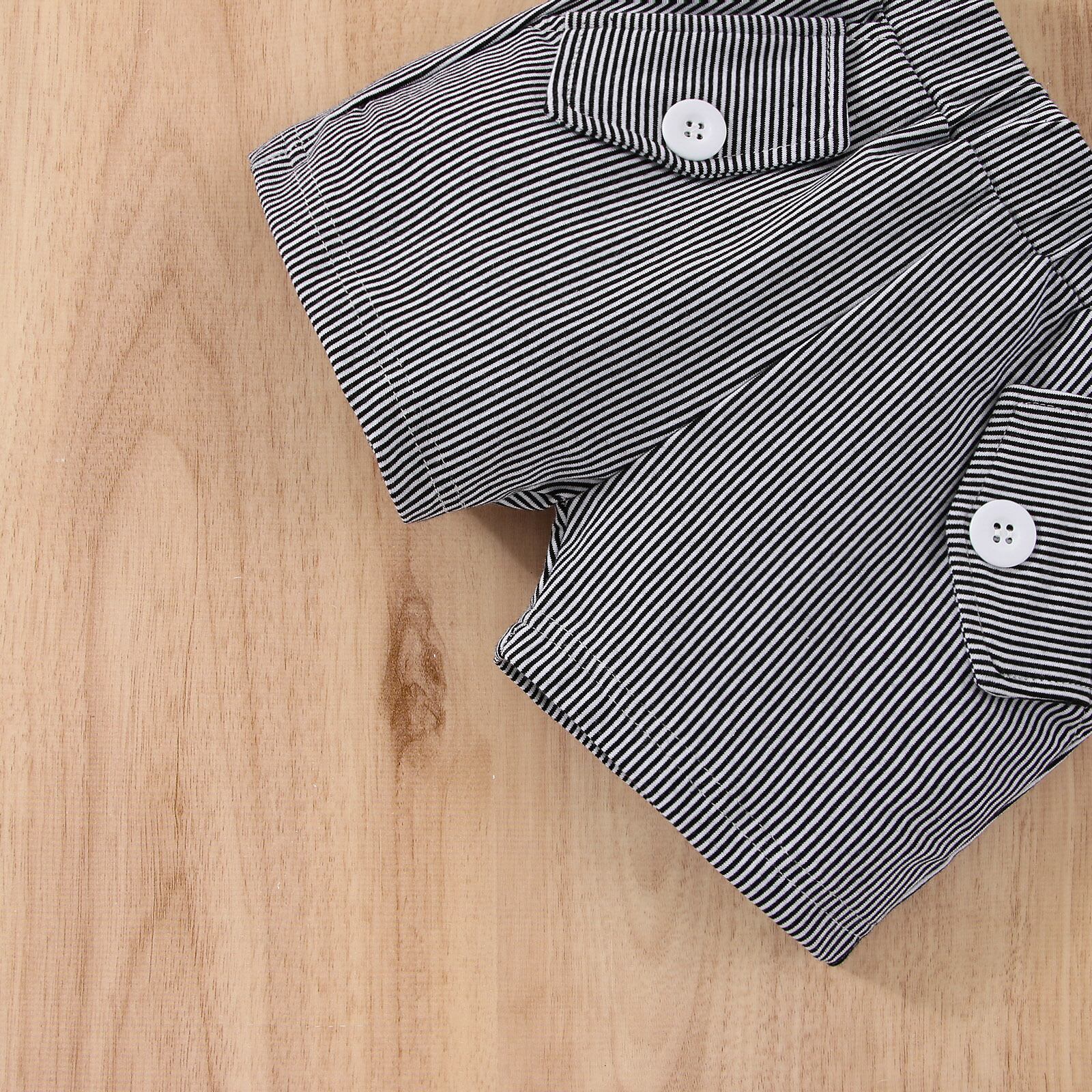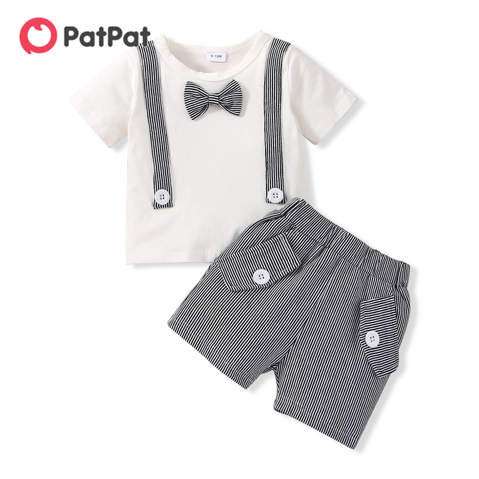 新作 PatPat 2ピース ベビー 男の子 コットン 半袖 紳士 蝶ネクタイ Tシャツとピンストライプショーツセット