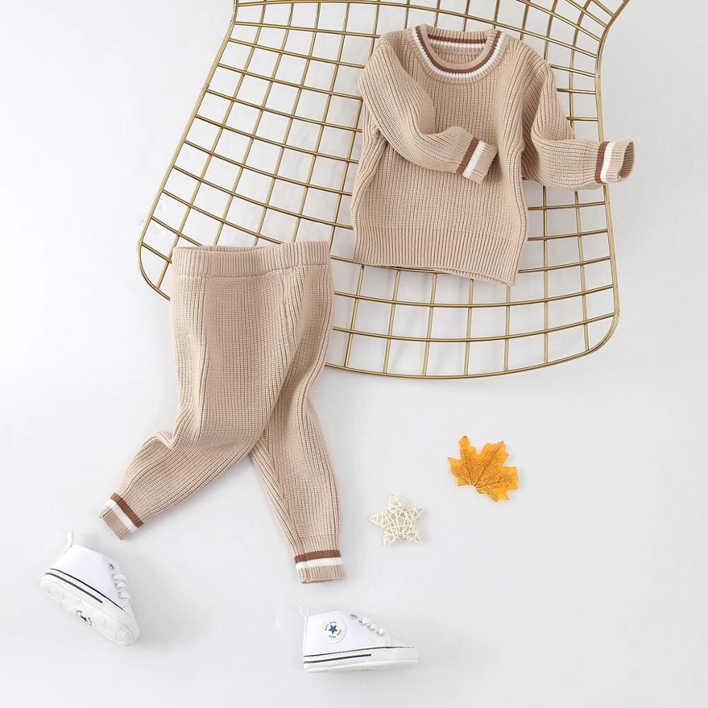 新作 PatPat 綿100% 2点セット ベビー 男の子 カジュアル ストライプ ベビーセット 無地 コットン ニットセット キッズ ソフト 秋冬 布