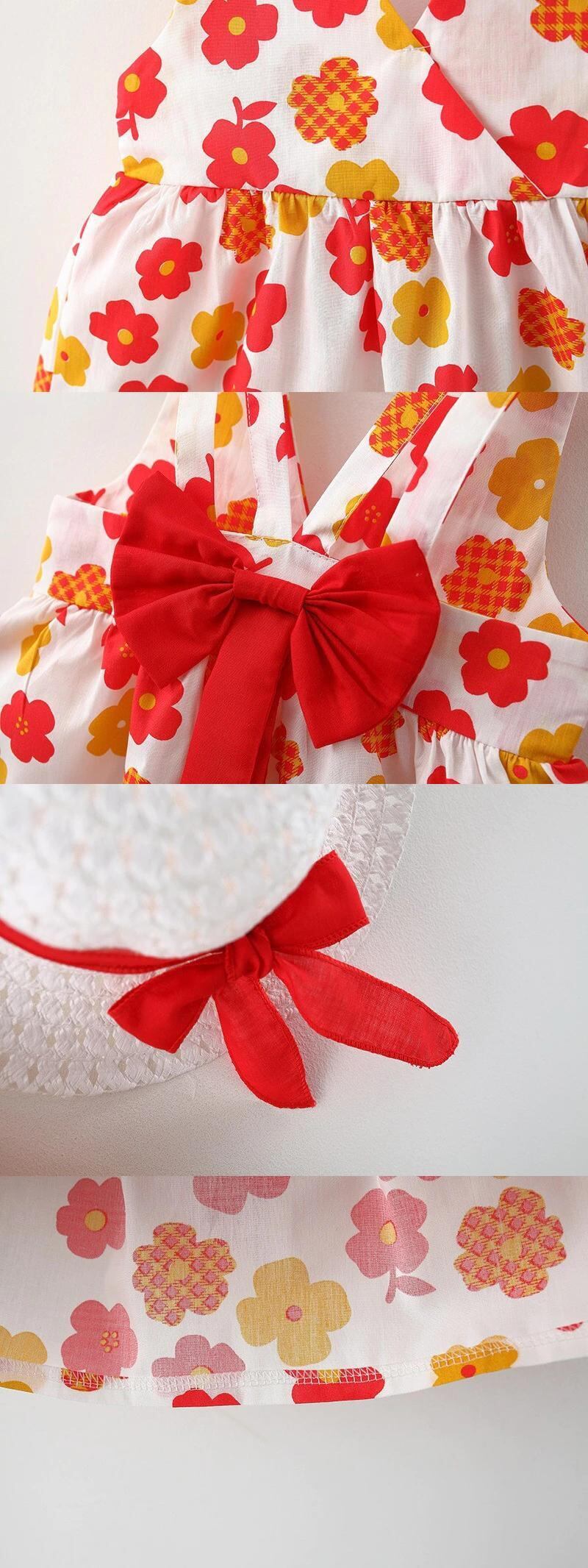 新作 2022 夏女の赤ちゃんドレスフラワープリント新生児幼児ドレス洗礼ガウン誕生日ドレス女の赤ちゃん服