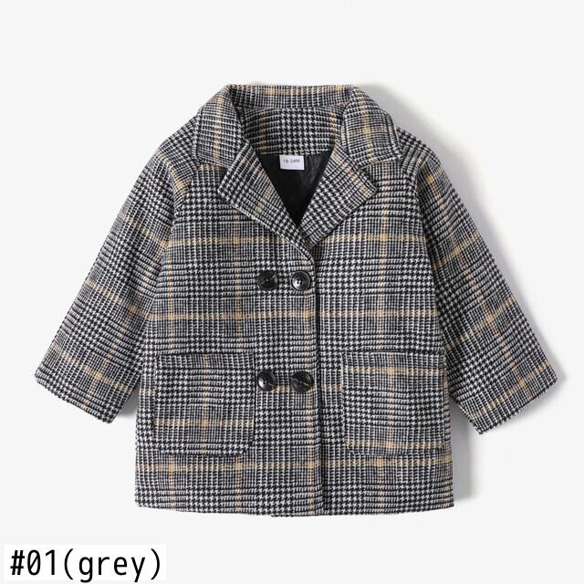 新作 PatPat 幼児ガール/ボーイアウターコートチェック柄ダブルブレストトレンチコートベビー少年少女チェック柄ジャケット子供冬