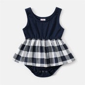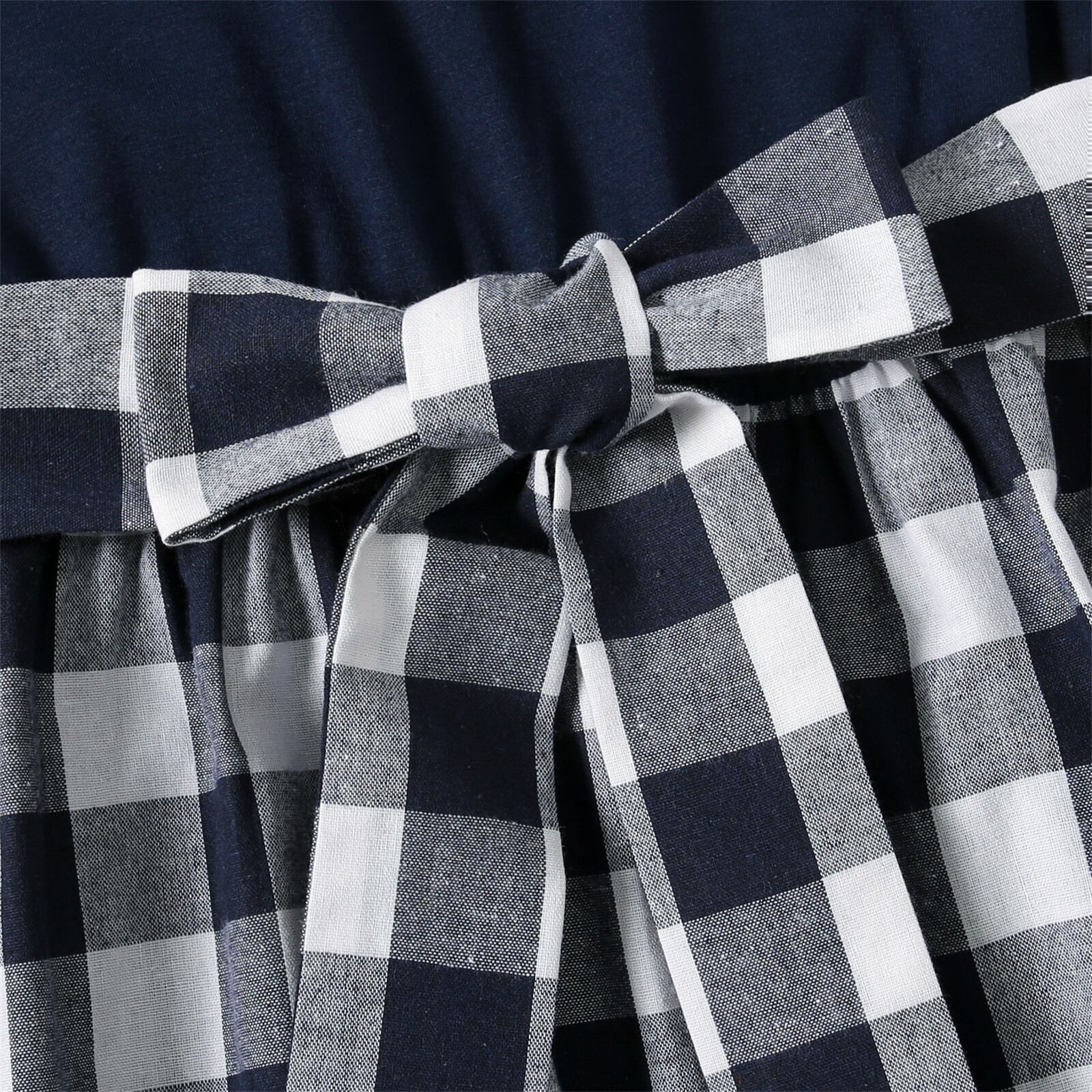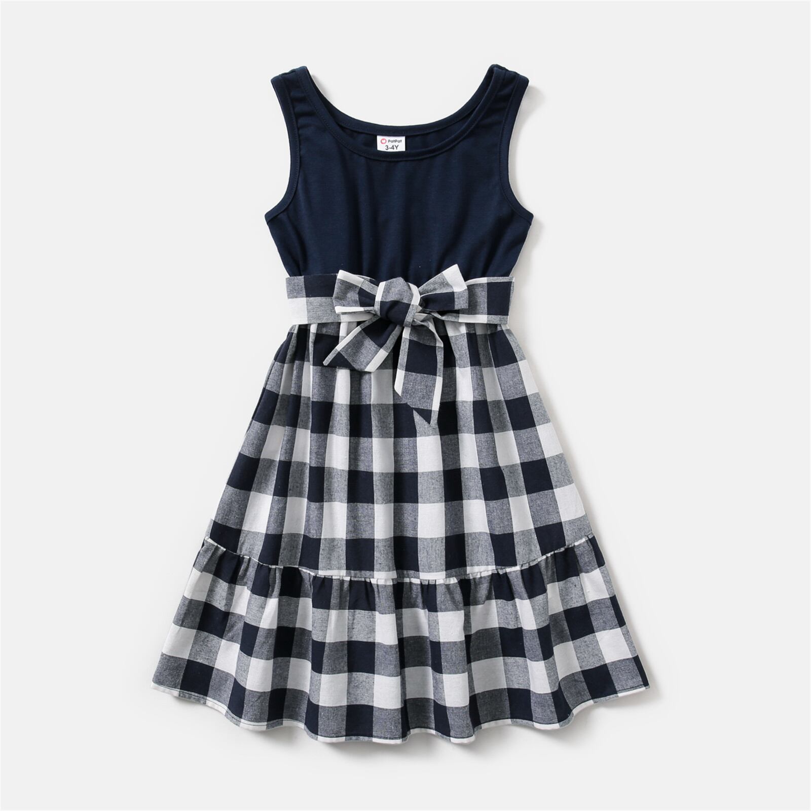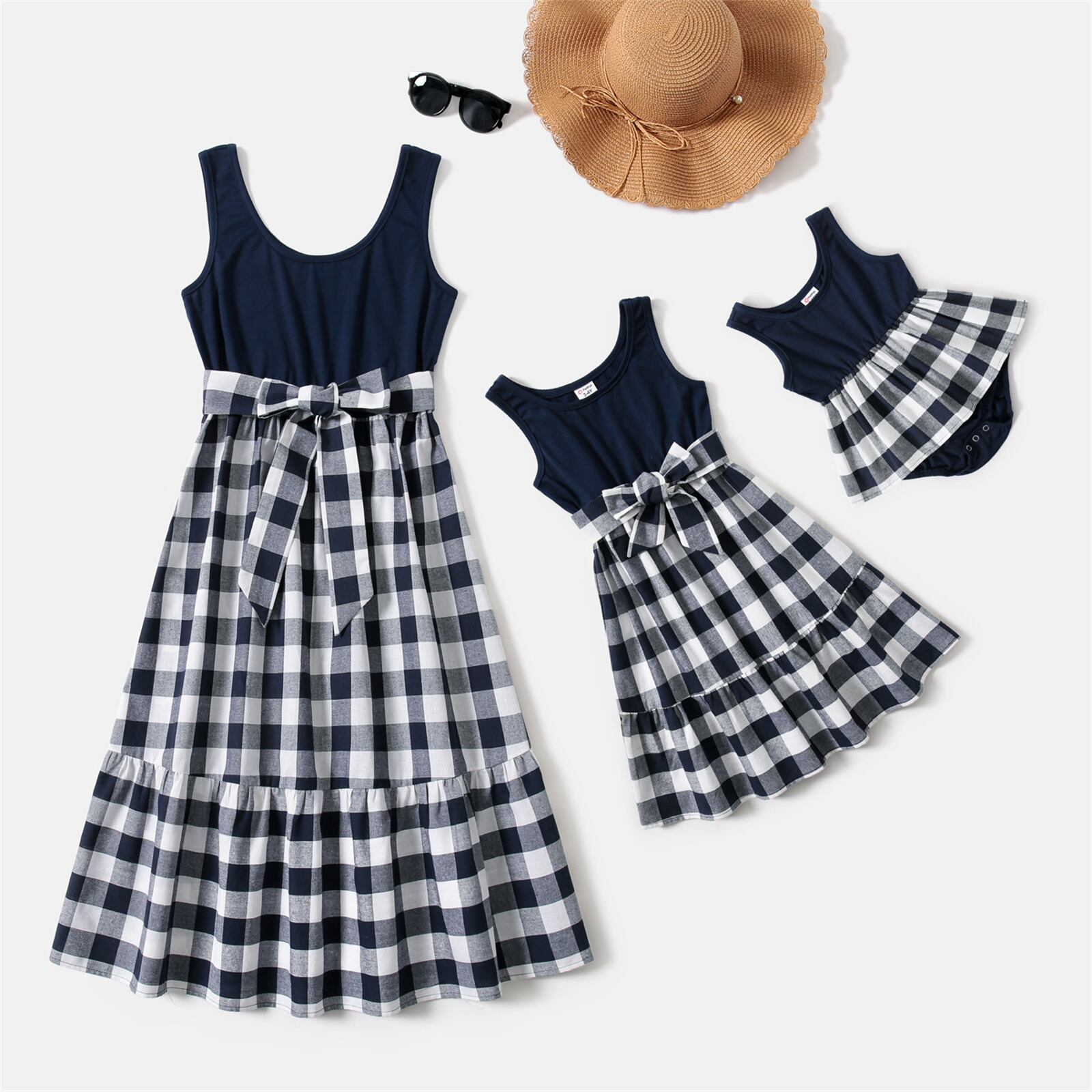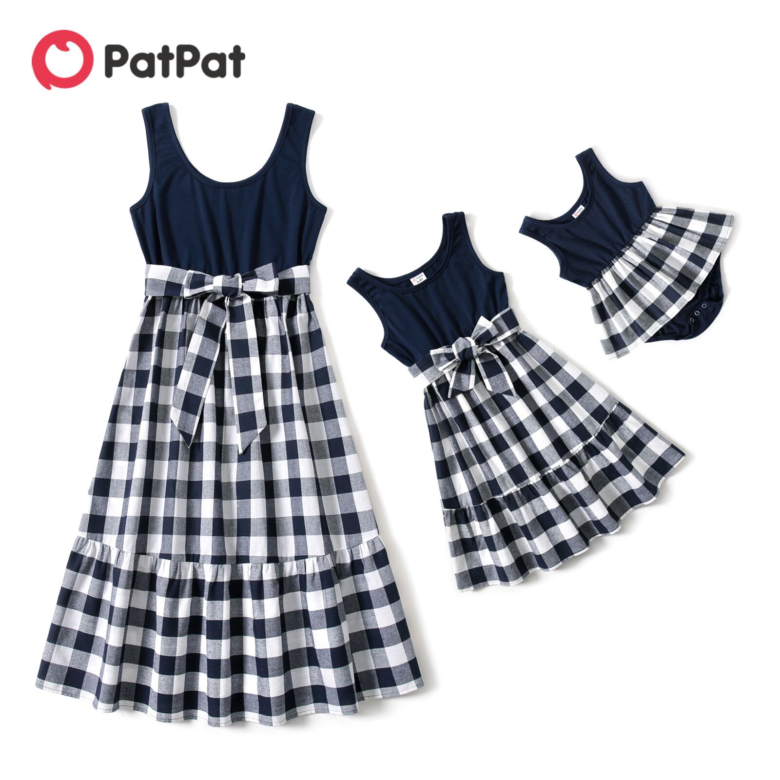 新作 PatPat 無地とチェック柄のスプライシング U ネック タンク ドレス ママと私