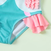 新作 PatPat ベビーガール漫画プリントちょう結びフリルノースリーブワンピース水着