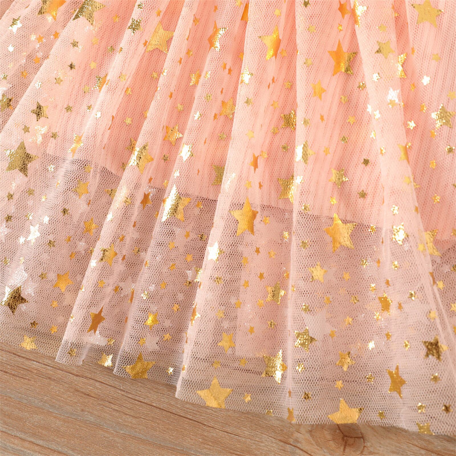 新作 PatPat 2ピース ベビーガール 漫画 象と星柄 ピンク リブ 長袖 メッシュドレスセット