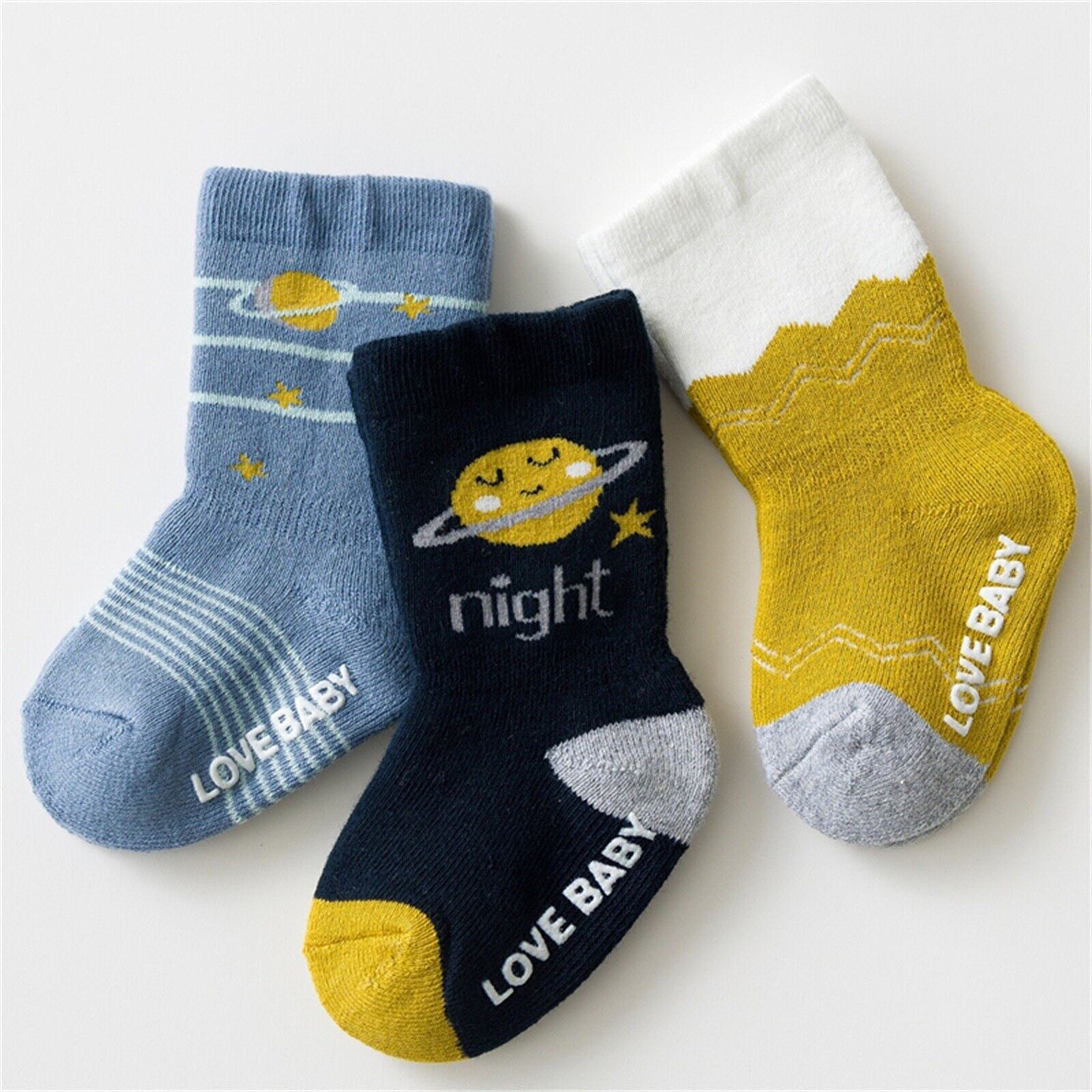 新作 PatPat 3 足組 赤ちゃん/幼児用 マルチスタイル プリント 厚手のテリー ノンスリップ ソックス