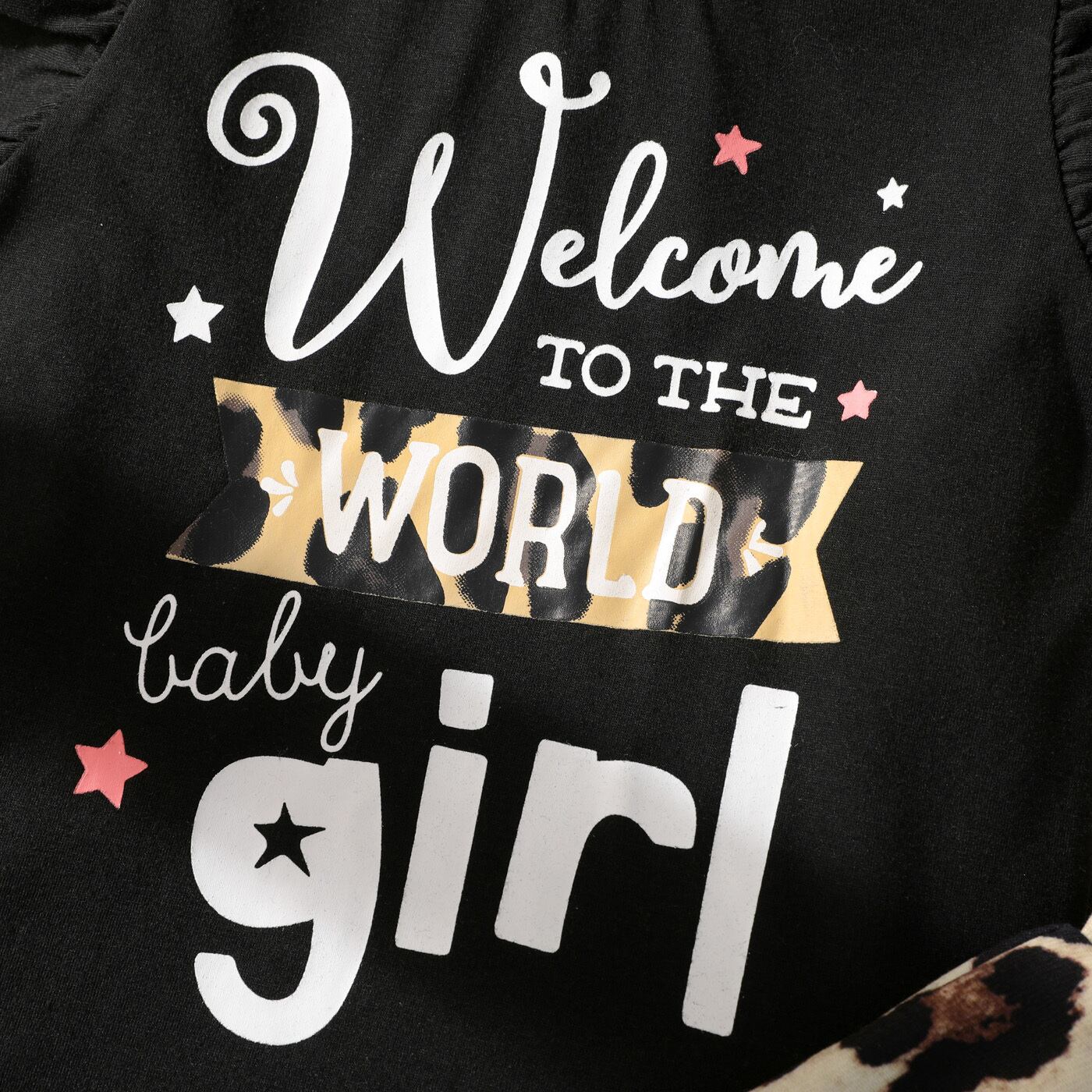 新作 PatPat 2ピース 幼児 女の子 レタープリント フラッタースリーブ ブラック Tシャツとヒョウ柄ショーツセット