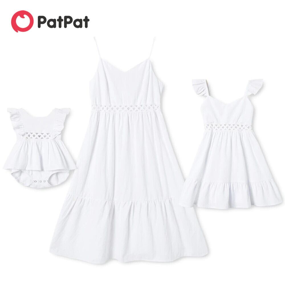 新作 PatPat モザイク無地 100% コットン マッチング ホワイト スリング マキシドレス
