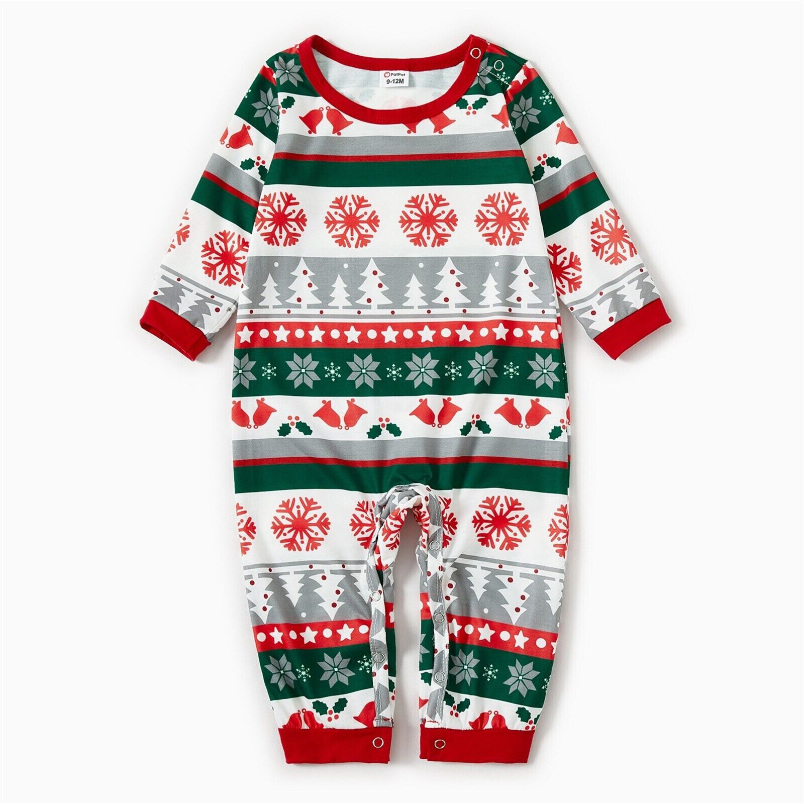 新作 PatPat ファミリー お揃い トナカイとスノーフレークプリント クリスマスパジャマセット (難燃性)