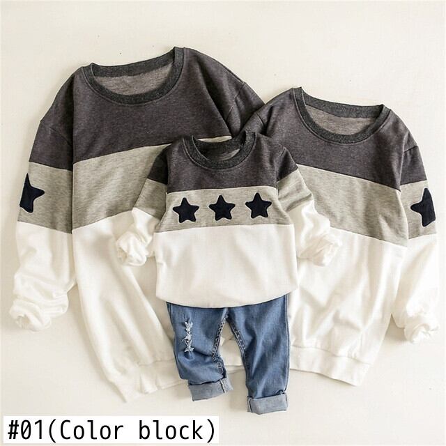 新作 PatPat Clic スタープリント カラーブロック ファミリーマッチング スウェットシャツ(パンツなし)